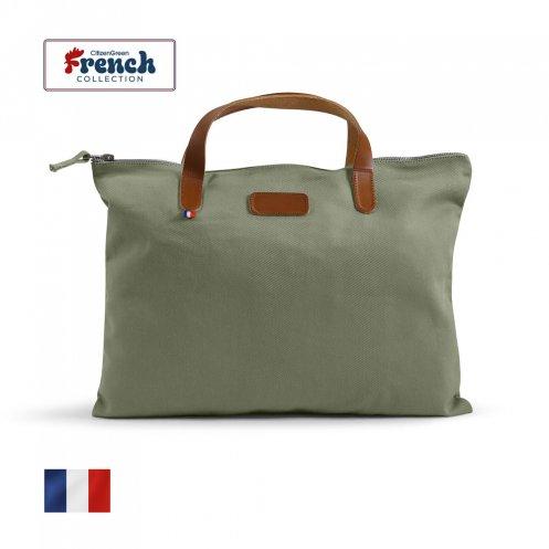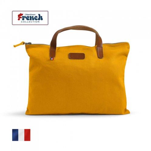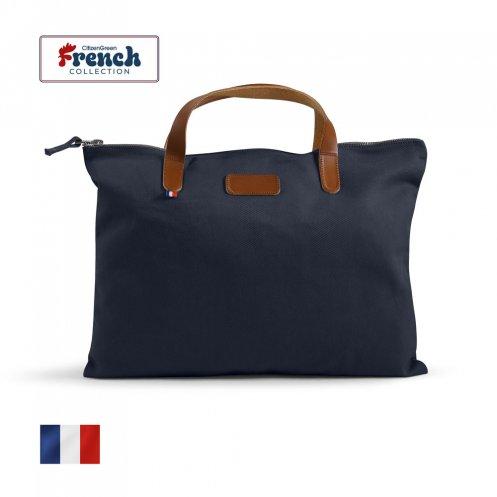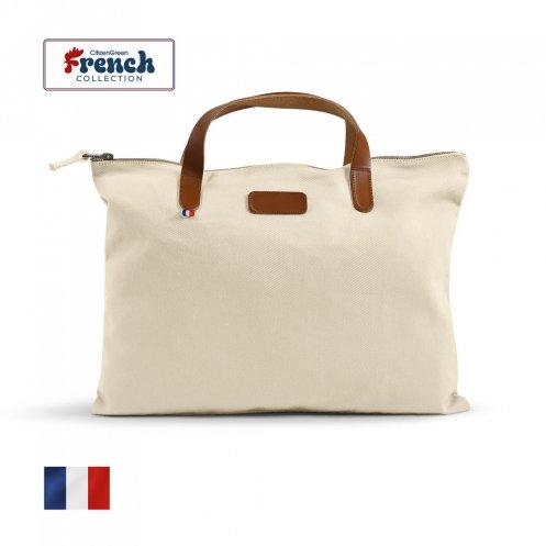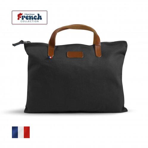 Sacoche coupé et cousu en France, fermeture zippée, mousqueton porte-clés intérieur (cuir) et 2 poignées longues 2,2 x 38 cm.