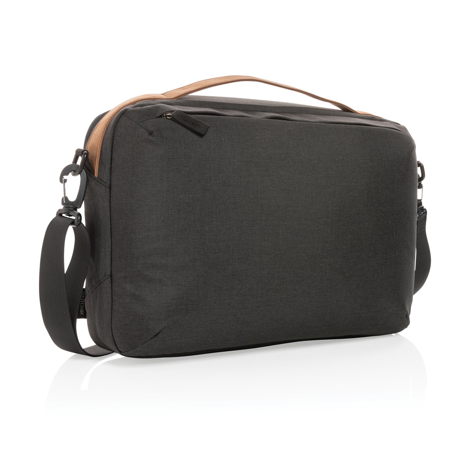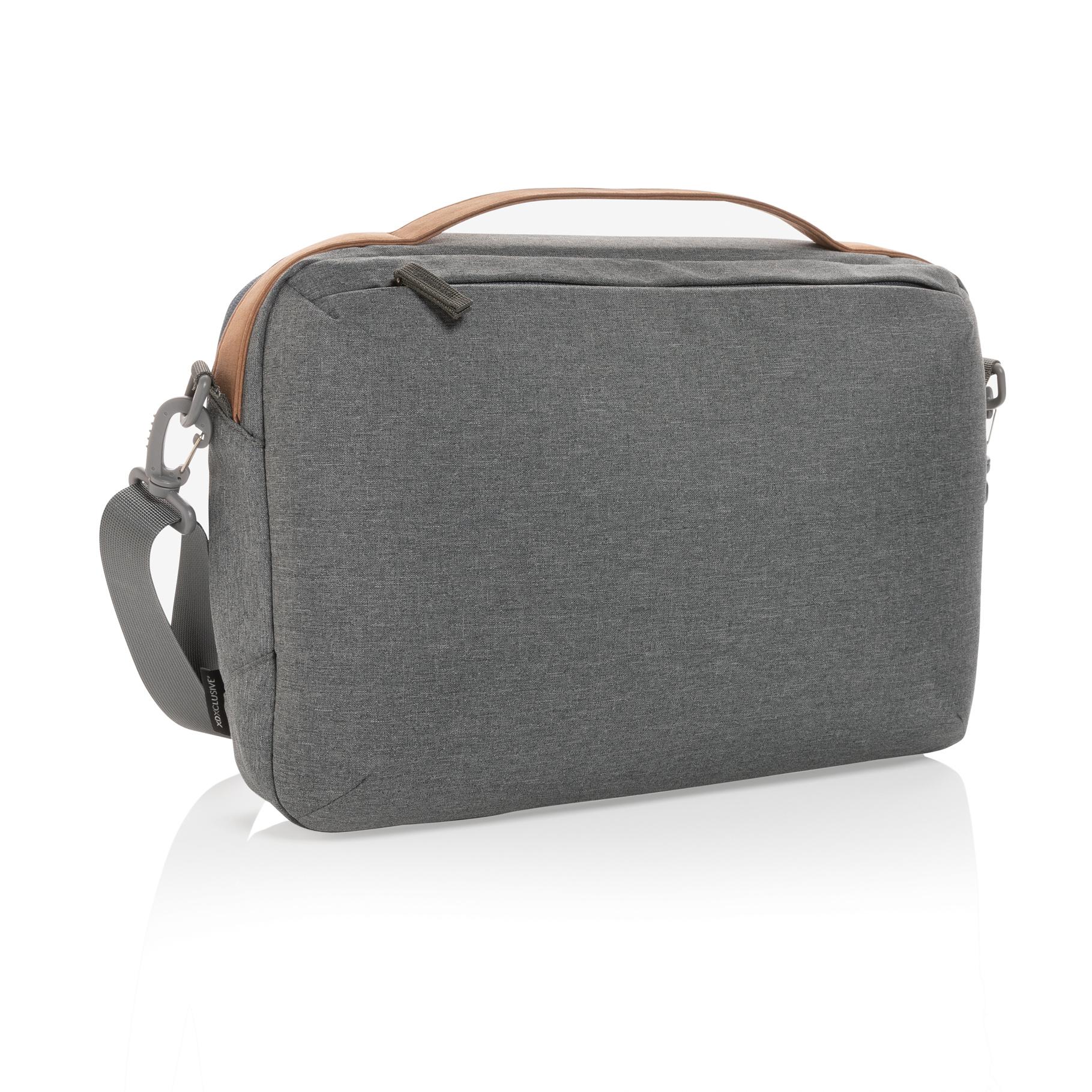 Sacoche d'ordinateur au design minimaliste et élégant. Le compartiment principal dispose d'une poche à ordinateur portable de 15,6” et 2 poches ouvertes en maille. Poche à fermeture à zip à l'avant. Sur le dessous, vous trouverez une poignée PU. Les matériaux extérieurs sont fabriqués en polyester recyclé. Avec traceur AWARE™ qui prouve l'utilisation réelles des matériaux recyclés. Chaque sac permet d'économiser 5,2L d'eau et a réutilisé 8,75 bouteilles en PET 0,5L. 2% de chaque produit IMPACT vendu sera reversé à Water.org.