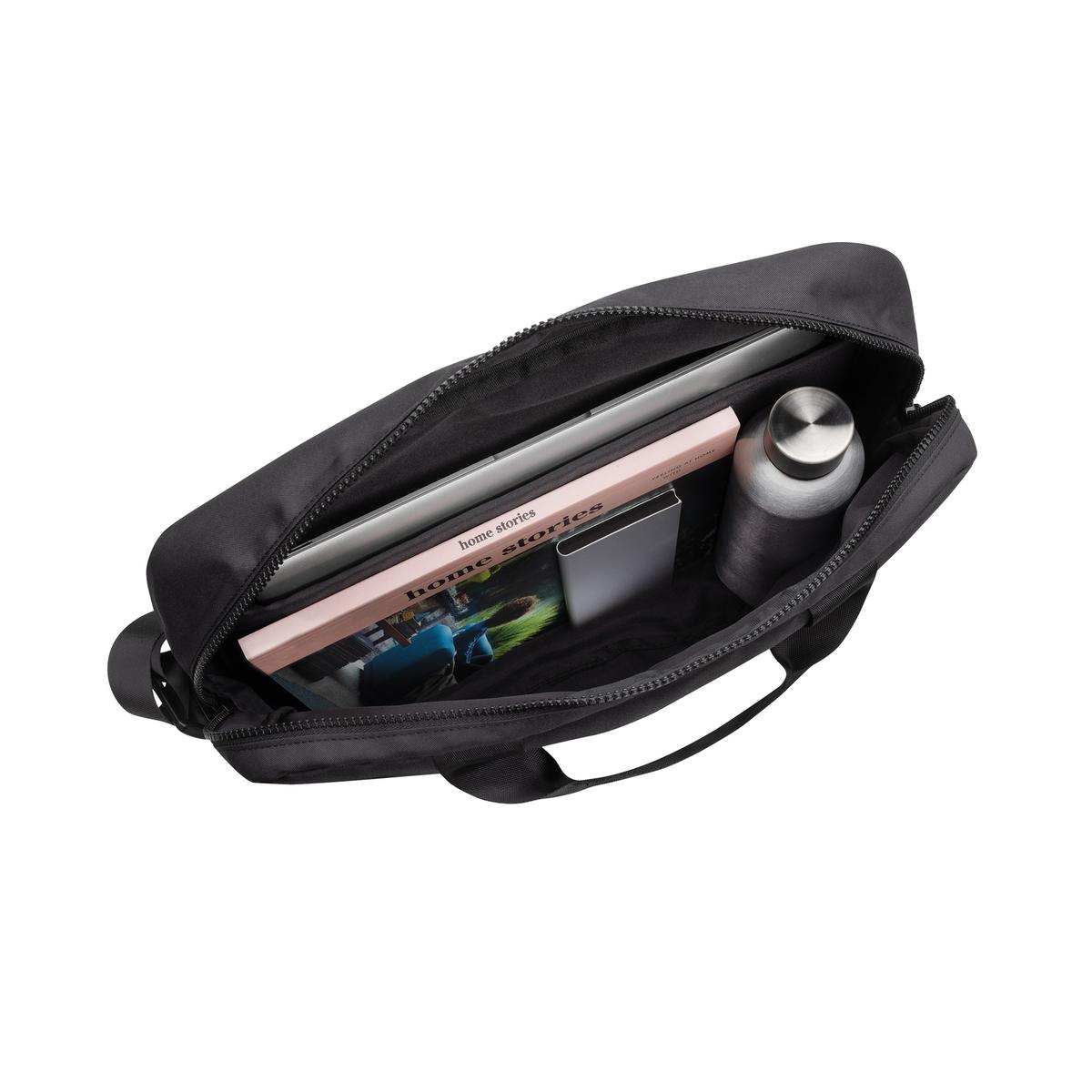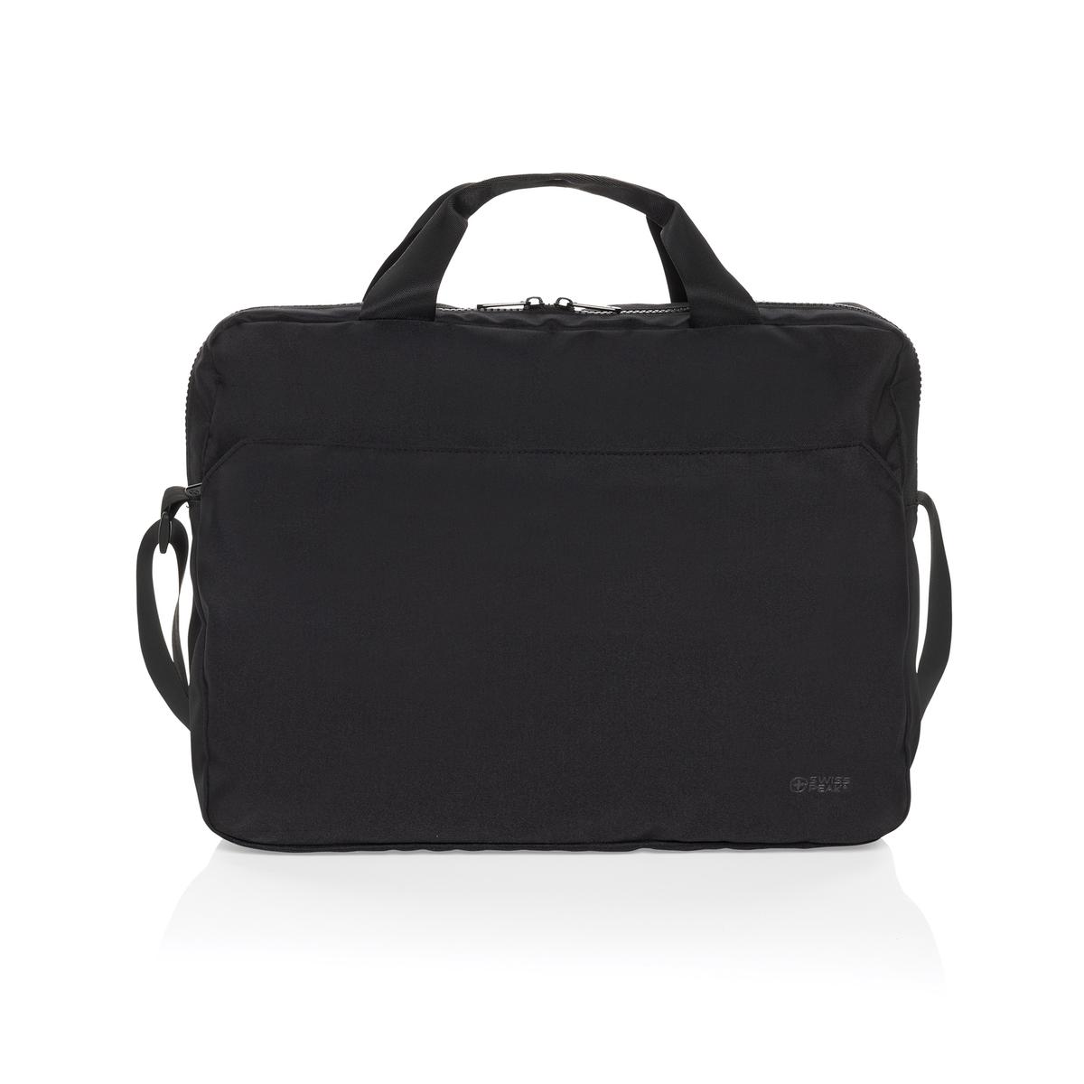 Transportez votre technologie avec style grâce au sac pour ordinateur portable 15,6 pouces en rPET Aware™ Swiss Peak Essential. Ce sac élégant comprend un compartiment principal avec une section dédiée à l'ordinateur portable qui permet d'accueillir les ordinateurs portables de 15,6 pouces en toute sécurité. Le sac comprend également une poche frontale zippée pour les accessoires, deux poignées en toile et une bandoulière amovible et réglable (120 cm) avec boucles pour faciliter le transport. Le logo Swiss Peak ton sur ton sur le devant ajoute une touche d'élégance à son design fonctionnel. Fabriqué à partir de polyester recyclé intégrant le traceur AWARE™. 2 % des recettes de chaque produit vendu avec AWARE™ seront reversés à Water.org. Sans PVC.
