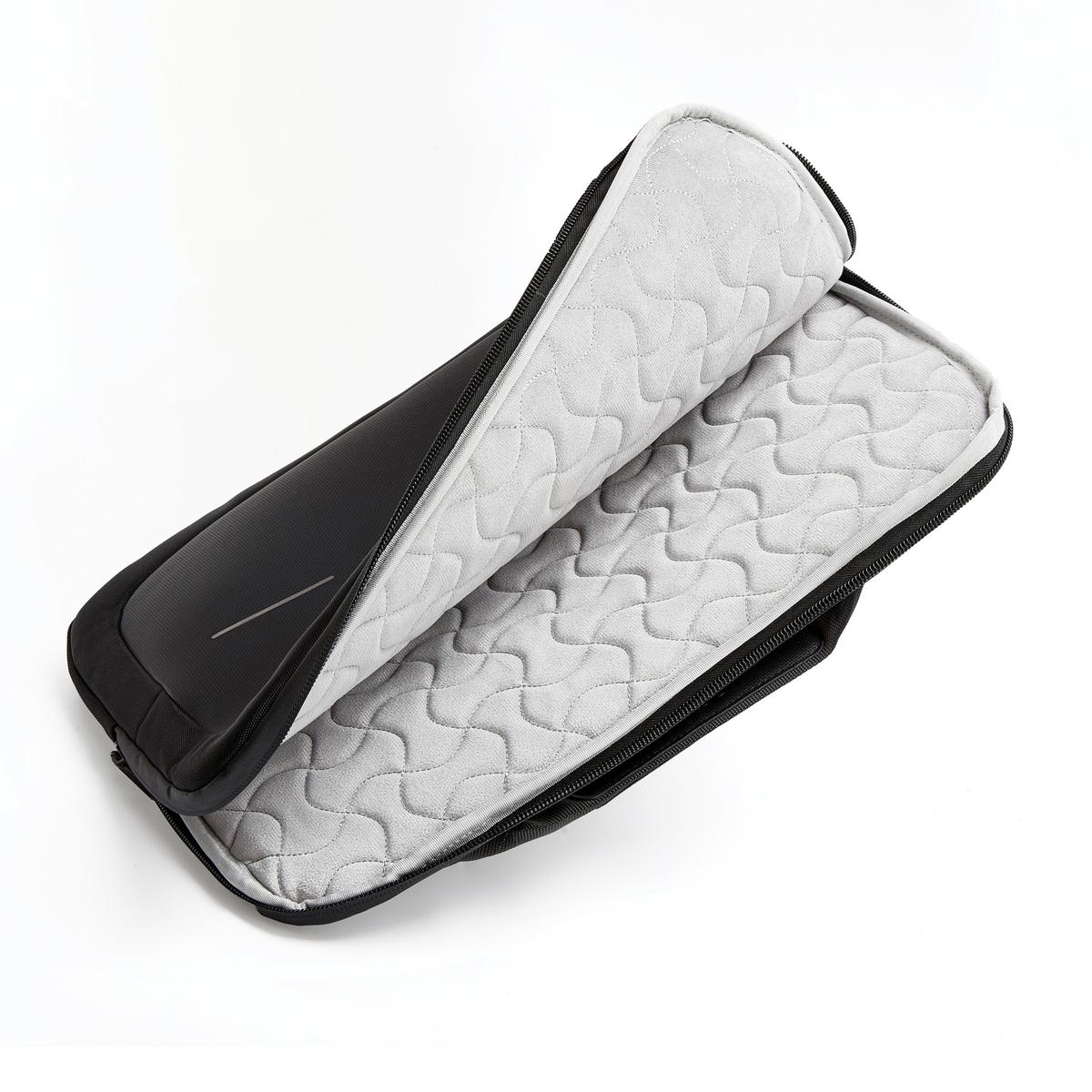 Sacoche XD Design pour ordinateur portable 16" en noir classique est le summum du style et de la fonctionnalité pour les professionnels en déplacement. Méticuleusement fabriqué en tissu rPET 1200D 100% Aware™ avec une finition déperlante, ce sac raffiné offre un mélange parfait de sophistication et de praticité. Que vous vous rendiez à des réunions d'affaires, que vous voyagiez ou que vous fassiez vos trajets quotidiens, cette sacoche offre polyvalence et fiabilité. Doté d'une bandoulière amovible pour plus d'adaptabilité et d'une poche extérieure pour un accès rapide aux éléments essentiels. Doublure en polaire Cool grey 5C. Conçue dans un souci de durabilité, la sacoche pour ordinateur portable 14" XD Design adopte une attitude écoconsciente Avec AWARE™, l'utilisation de matériaux en tissu recyclé authentique et les déclarations d'impact de réduction de l'eau sont garanties, en utilisant le traceur physique disruptif AWARE et la technologie blockchain.