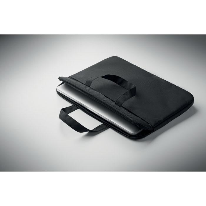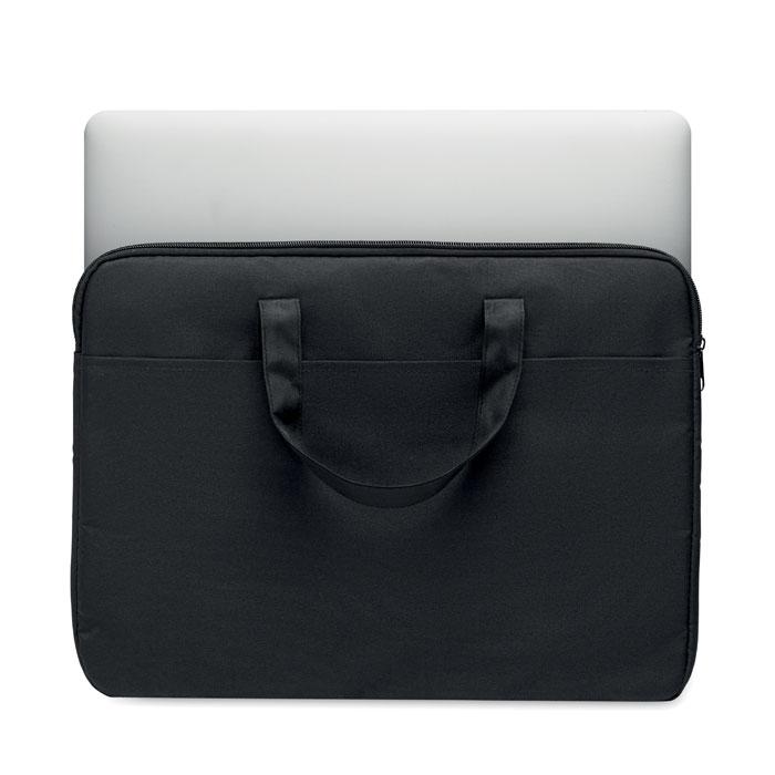 Sacoche pour ordinateur portable 15'' en polyester 300D RPET avec poignées et support pour trolley au verso.