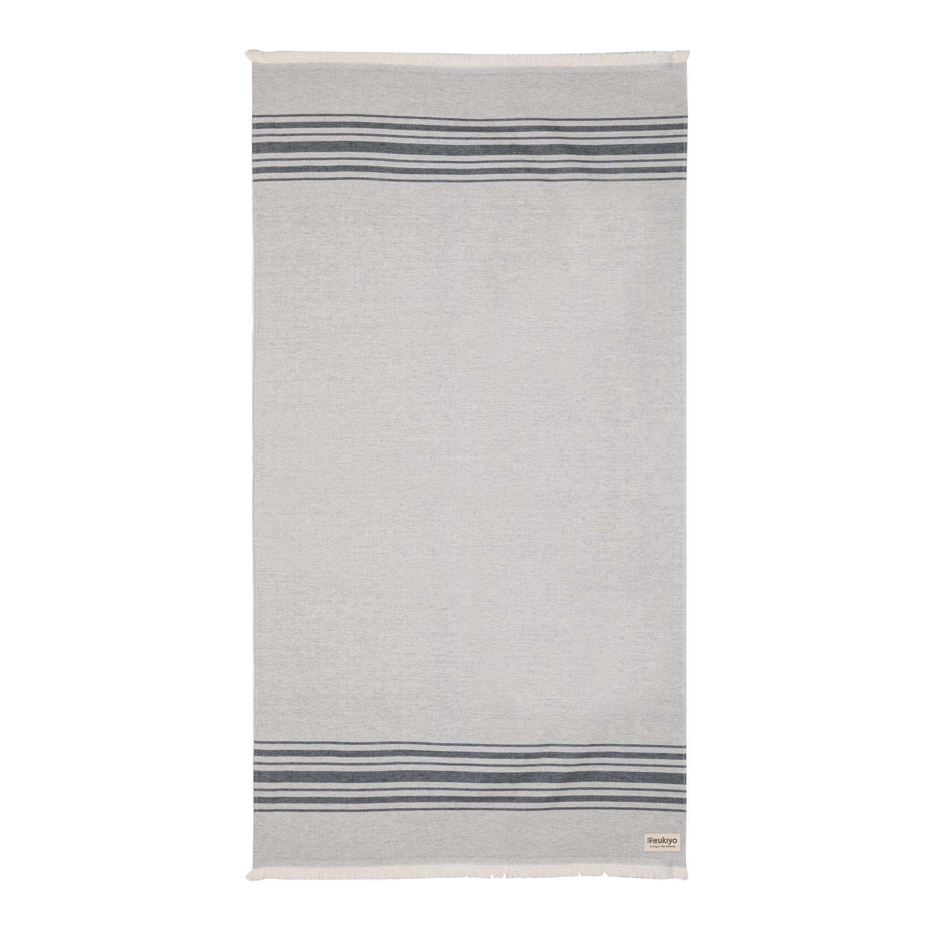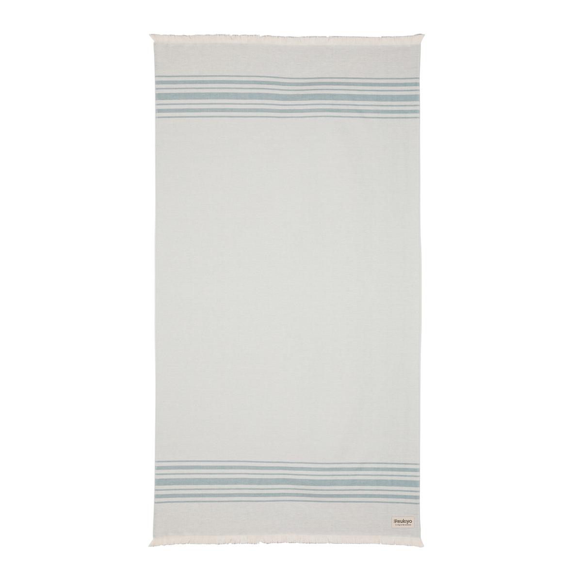 Serviette 100x180cm légère, fabriquée à partir de 12 % de coton recyclé. Douce, très absorbante, résistante au sable et à séchage rapide. Les serviettes de hammam sont multifonctionnelles : vous pouvez également l'utiliser pour un pique-nique, couverture pour bébé ou comme serviette de yoga, de plage et de gymnastique. Avec traceur AWARE™ qui valide l'utilisation authentique du coton recyclé. Chaque serviette permet d'économiser 597,8 litres d'eau. 2 % des recettes de chaque produit Impact vendu seront reversés à Water.org. Lavable en machine. Fabriqué au Portugal. OEKO-TEX® STANDARD 100. 2306129 Centexbel.
