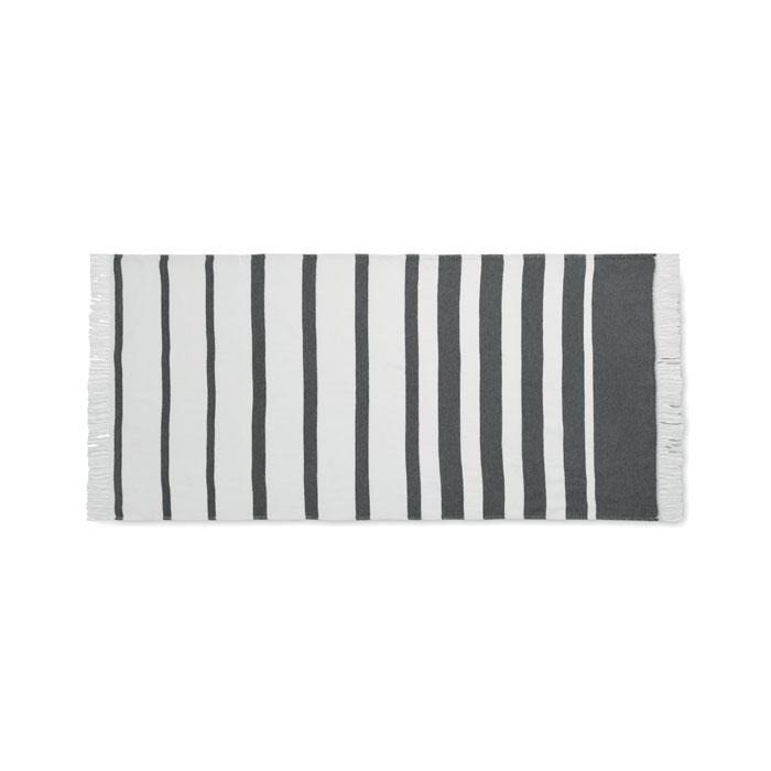 Serviette en 70% coton recyclé et 30% polyester recyclé SEAQUAL®. 300 gr/m². 70x140 cm. SEAQUAL® INITIATIVE travaille avec des entreprises de dépollution des océans dans le monde entier pour valoriser les déchets récupérés. Fabriqué en UE.