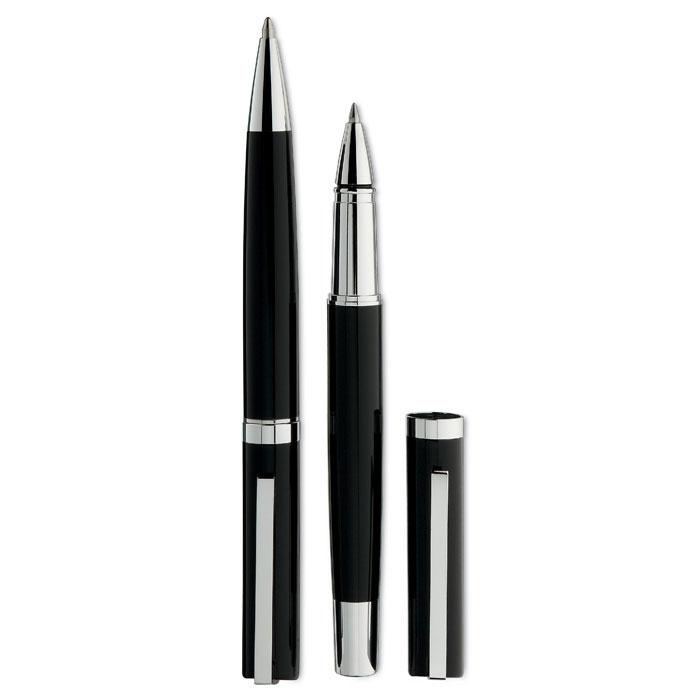 Set d'écriture présenté en coffret cadeau. Stylo à bille twist et roller. Encre bleue.