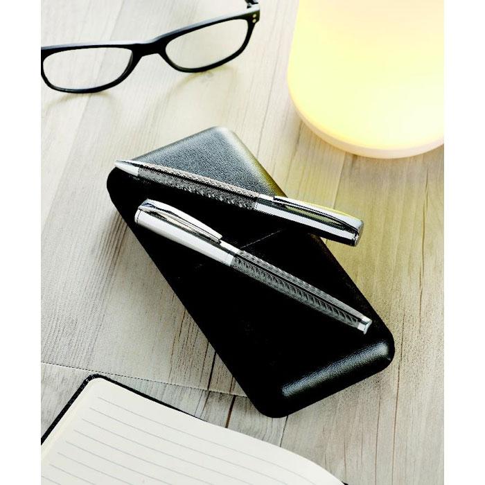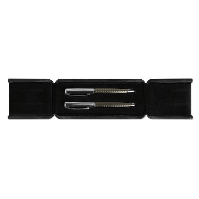 Set d'écriture présenté en coffret cadeau. Stylo à bille twist et roller. Encre bleue.