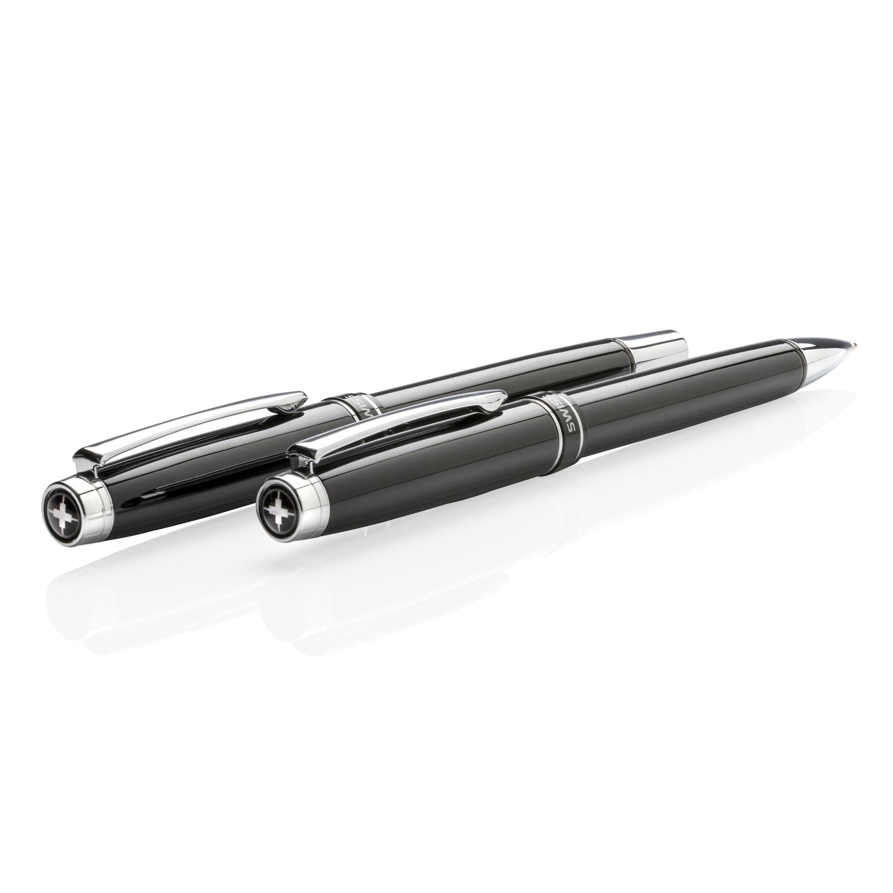 Set stylos Swiss Peak Héritage avec un roller et stylo à bille au design élégant. Encre bleue Dokumental® de fabrication allemande pour +/- 1200m d’écriture et bille en carbure de tungstène assurant une écriture régulière. Livré dans une boîte cadeau Swiss Peak.