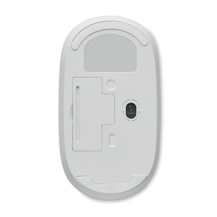 Souris optique sans fil en ABS recyclé avec dessus en bambou. 1 piles AA non incluses. Le bambou est un produit naturel, et présente de légères variations de couleur, de décoration et de tailles.
