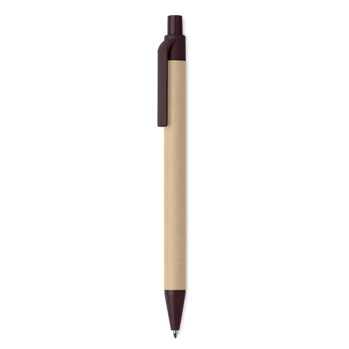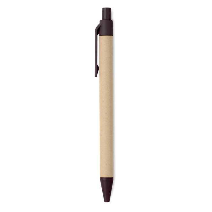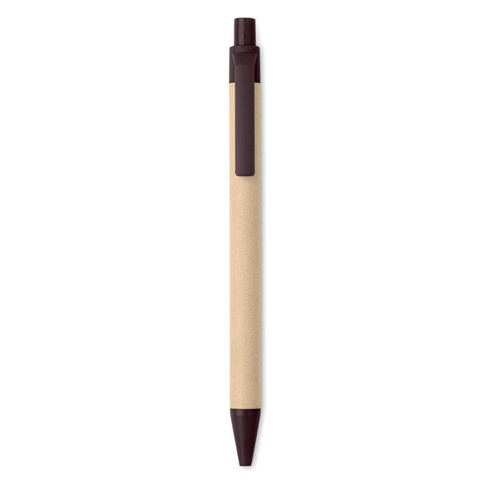 Stylo à bille à bouton-poussoir composé à 40% de cosse de café et 60% en ABS. Encre bleue.