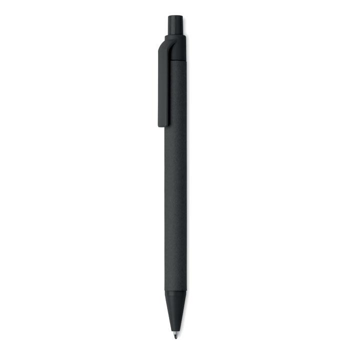 Stylo-bille à bouton-poussoir avec le corps en papier et attributs composés à 100% en PLA maïs. Encre bleue.