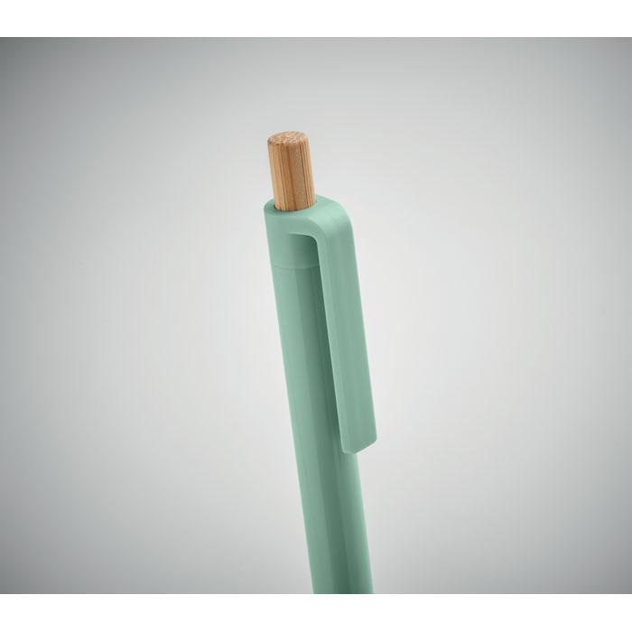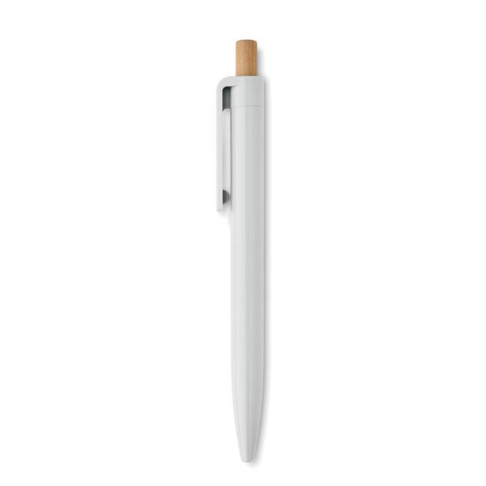 Stylo bille en ABS recyclé avec bouton poussoir en bambou. Encre bleue.