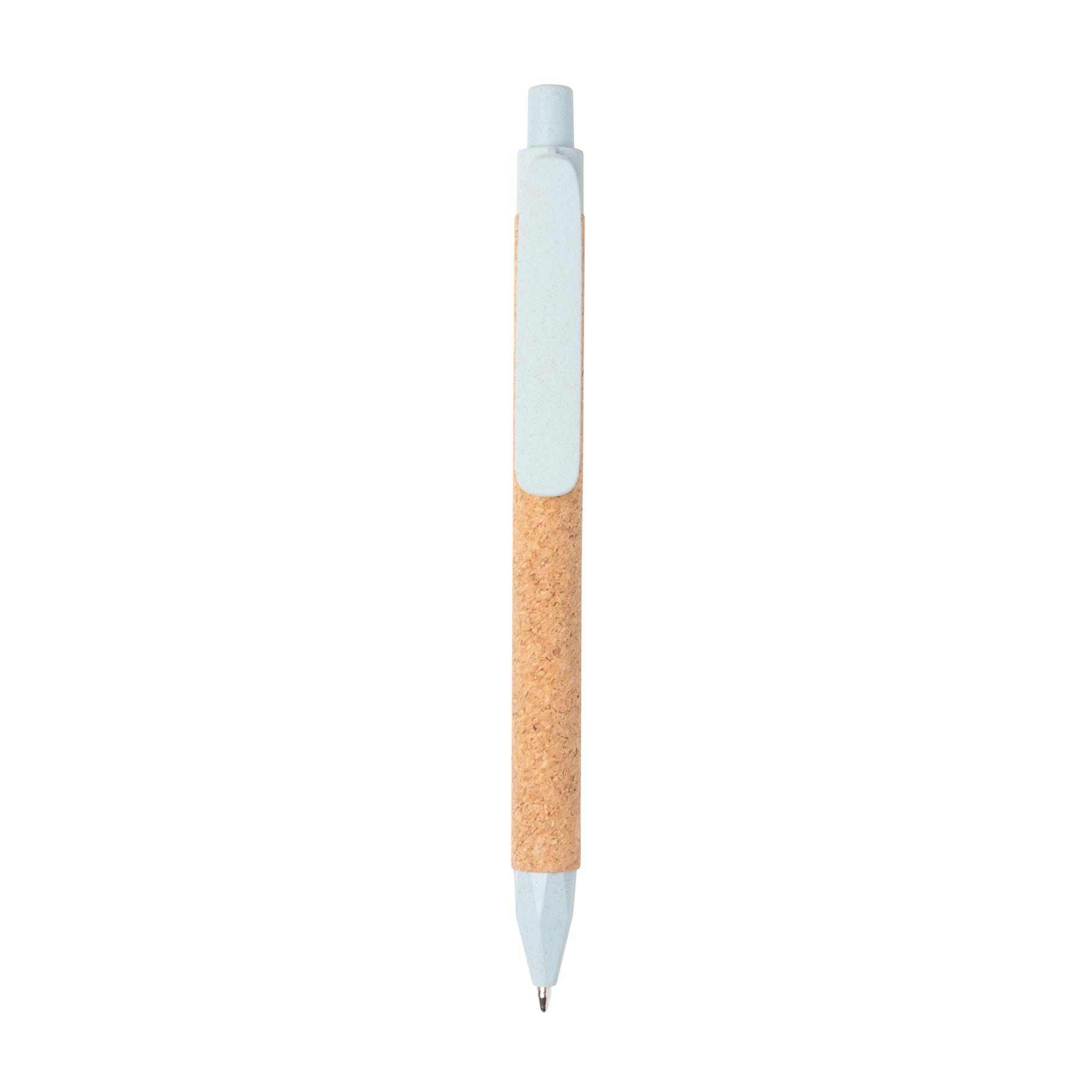 Stylo à bille recyclé en fibre de paille de blé et en liège. Encre bleue Dokumental® de fabrication allemande pour +/- 1200m d’écriture et bille en carbure de tungstène assurant une écriture régulière.