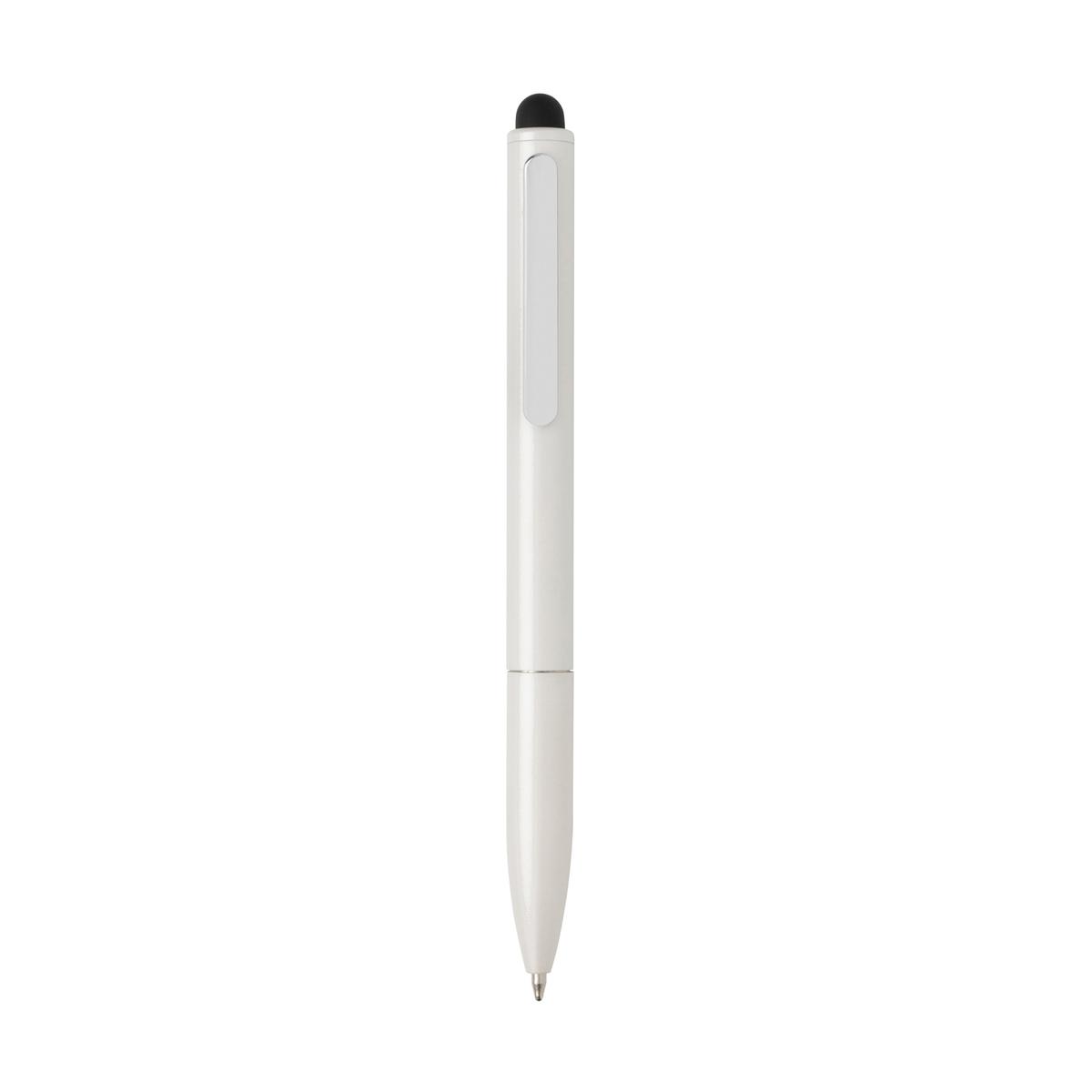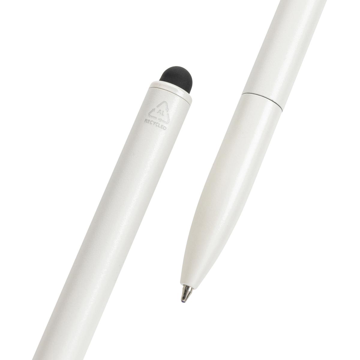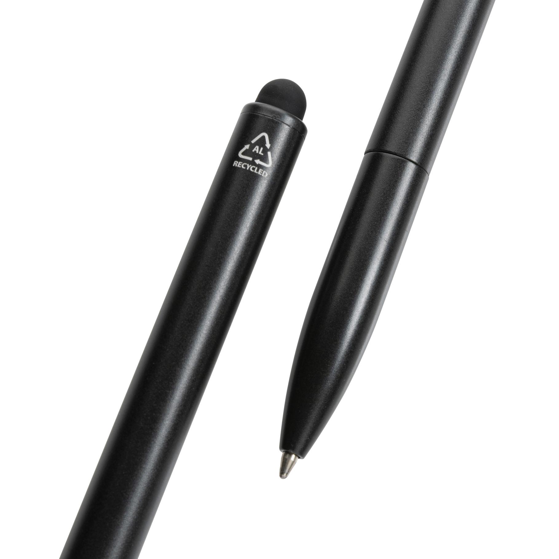 Stylo Kymi en aluminium recyclé certifié RCS allie parfaitement style et fonctionnalité, ce qui en fait un excellent choix pour vos besoins d'écriture. Mécanisme de rotation et couleur d'écriture bleue. Largeur d'écriture 1 mm, longueur d'écriture 700 mètres. Avec stylet. Contenu recyclé total basé sur le poids de l'article : 27%.