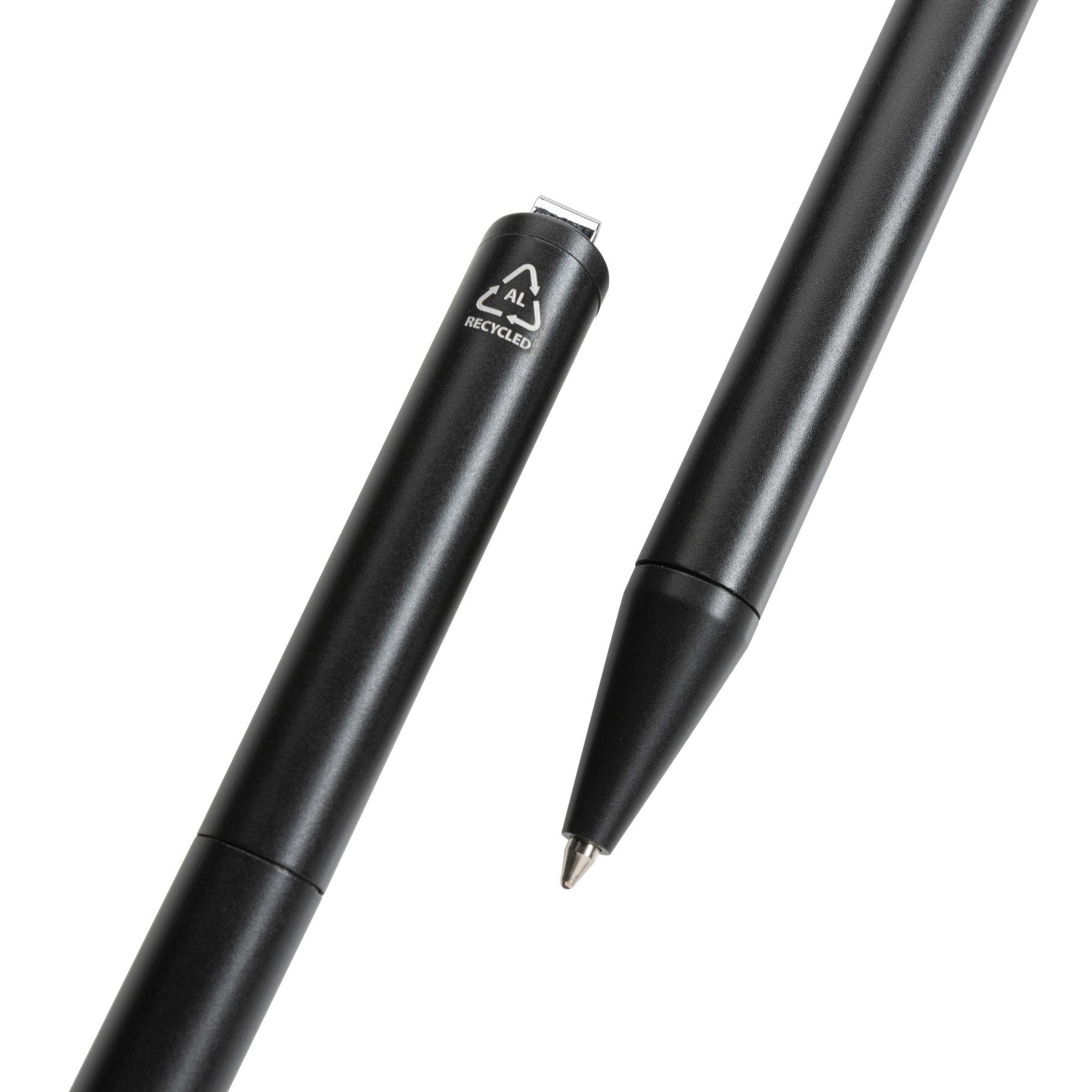 Stylo Xavi en aluminium recyclé certifié RCSC allie parfaitement style et fonctionnalité, ce qui en fait un excellent choix pour vos besoins d'écriture. Mécanisme de rotation et encre bleue Dokumental. Largeur d'écriture 1 mm, longueur d'écriture 1000 mètres. Contenu recyclé total basé sur le poids de l'article : 28%.