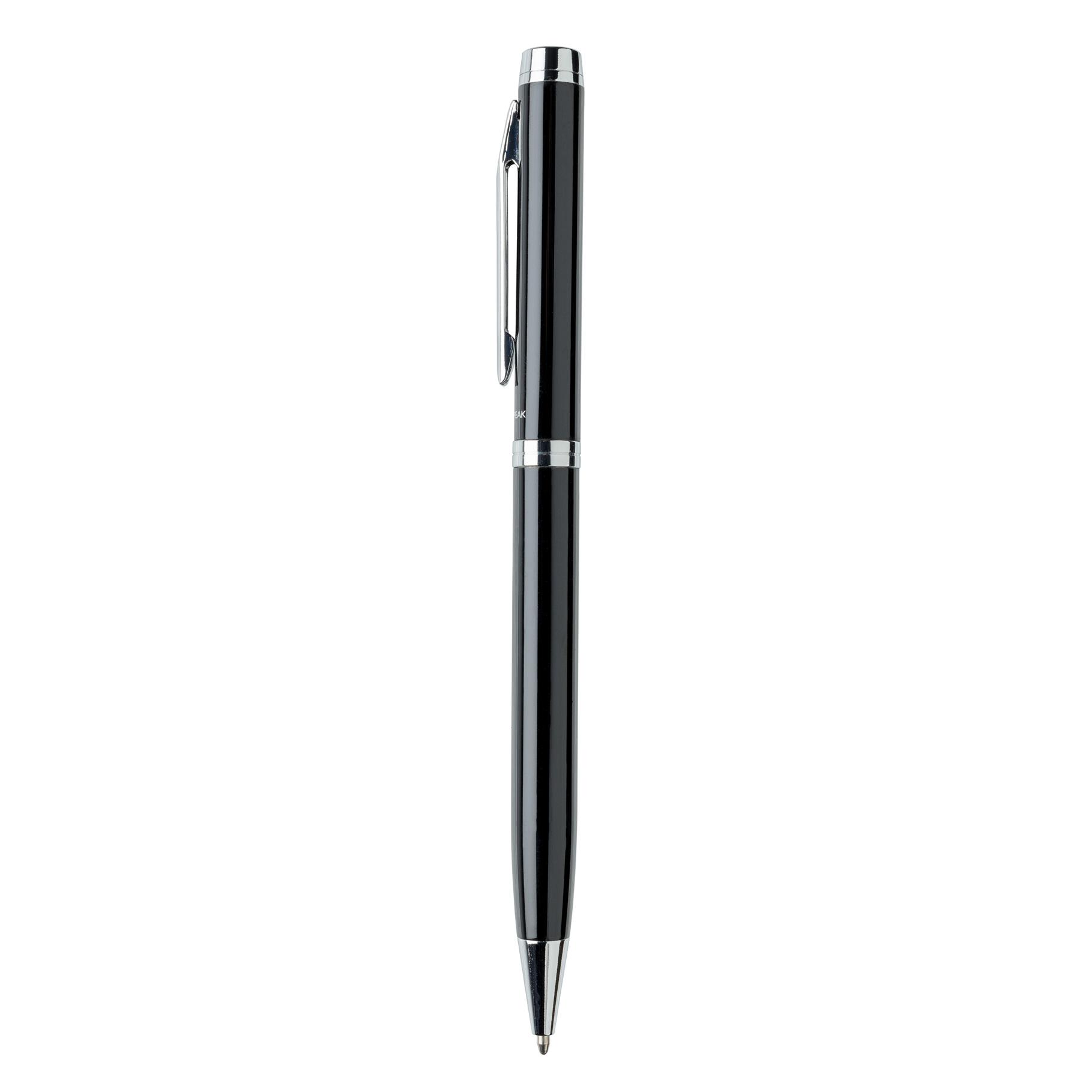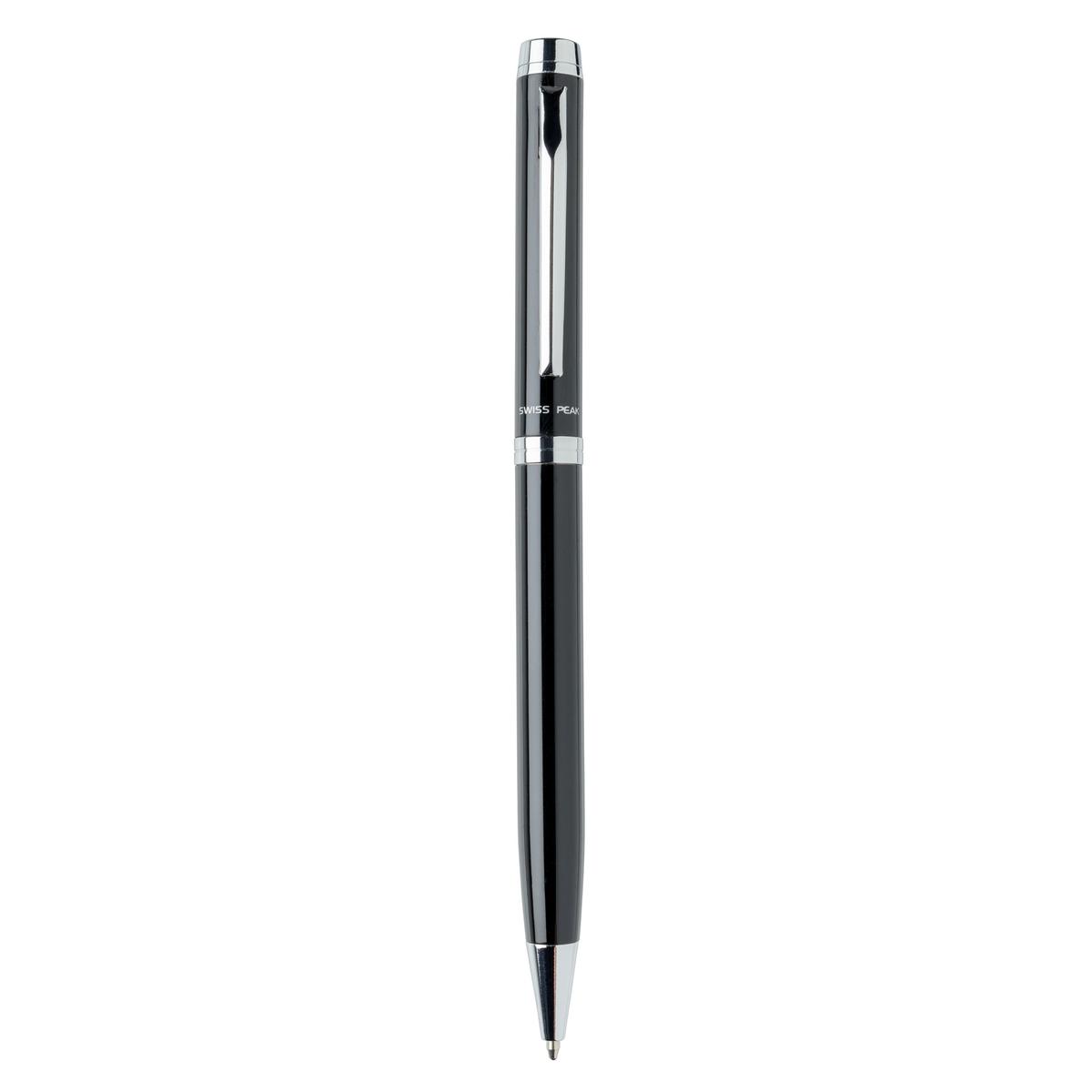 Stylo à bille au design élégant et de qualité. Encre bleue Dokumental® de fabrication allemande pour +/- 1200m d’écriture et bille en carbure de tungstène assurant une écriture régulière. Livré dans un fourreau Swiss Peak.