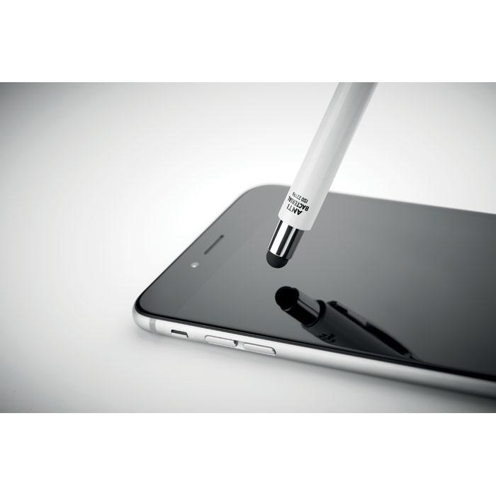 Stylo et stylet à bouton-poussoir en ABS avec revêtement antibactérien. ISO 22196. Encre bleue.