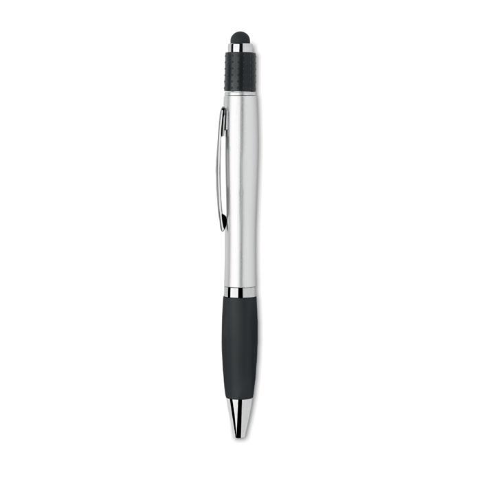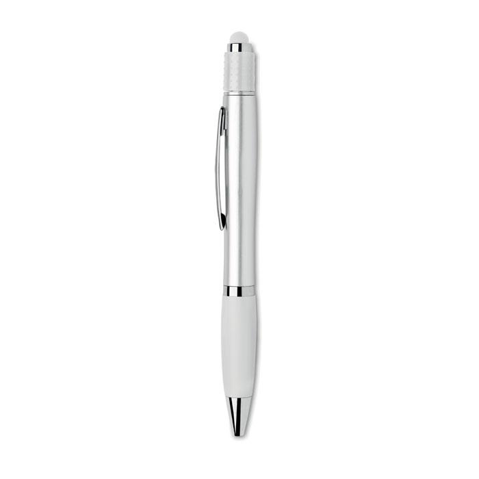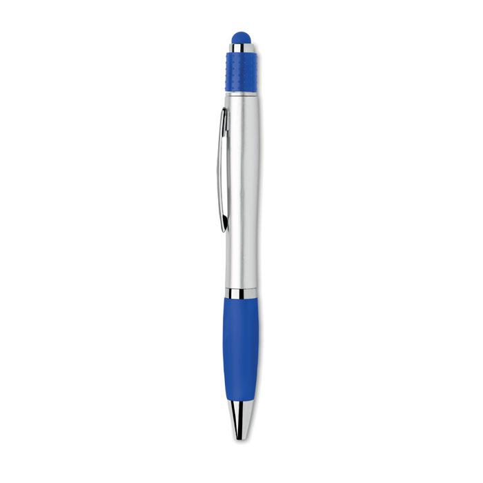 Stylo bille twist action stylus en ABS recyclé, fonction antistress spinner. Encre bleue.
