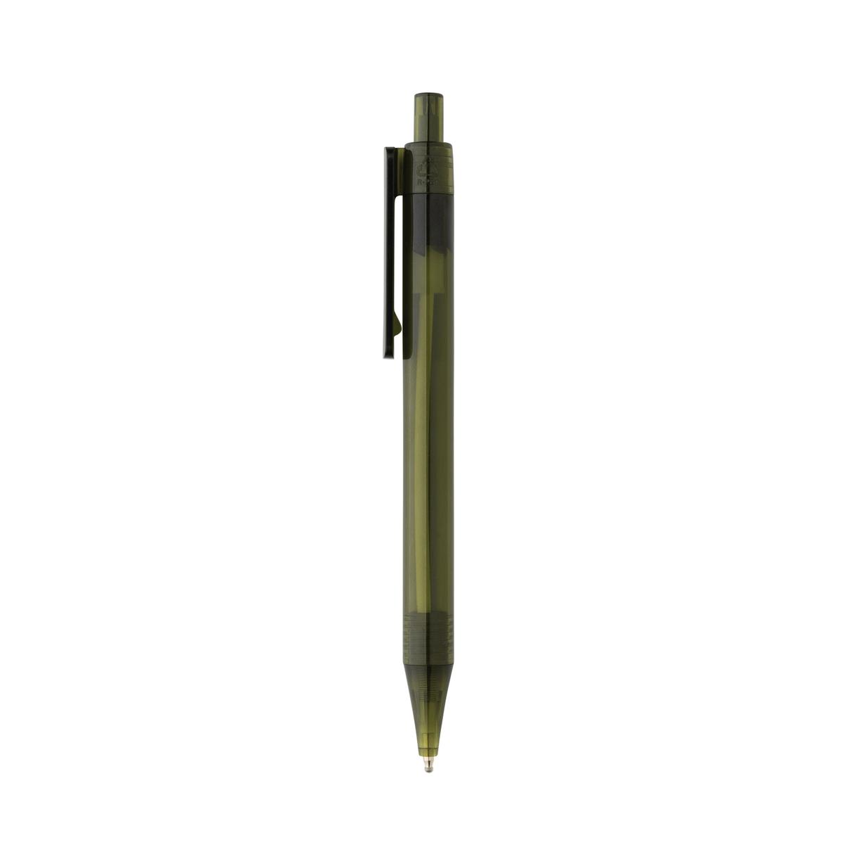 Un nouveau membre de la famille des stylos X. Fabriqué avec des matériaux recyclés certifiés GRS (Global Recycle Standard). La certification GRS garantit une chaîne d'approvisionnement entièrement certifiée pour les matériaux recyclés. Parfait pour communiquer le message de votre marque. Comprend une longueur d'écriture d'environ 1200 m. Recharge d'encre bleue allemande Dokumental® avec bille TC pour une écriture ultra douce.