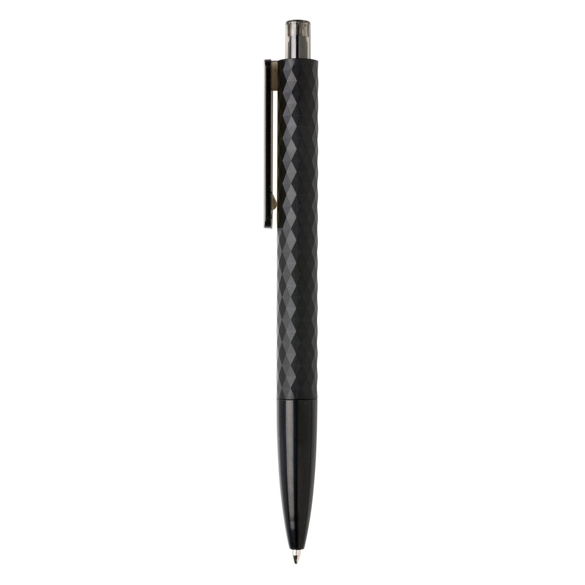 Stylo à bille rétractable en plastique avec finition losange texturé. Encre bleue Dokumental® de fabrication allemande pour +/- 1200m d’écriture et bille en carbure de tungstene assurant une écriture régulière.