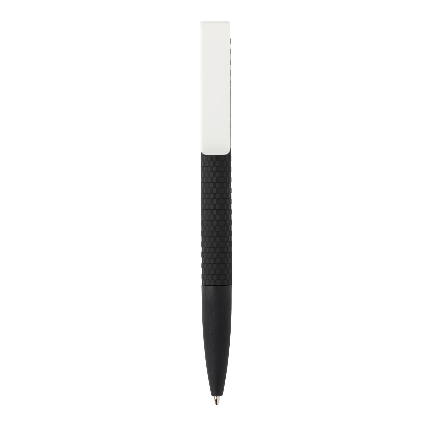 Stylo à bille rétractable, nouvelle version du X3 avec nouveau clip et design. Version avec finition gomme pour un confort d’écriture supplémentaire. Encre bleue Dokumental® de fabrication allemande pour +/- 1200m d’écriture et bille en carbure de tungstène assurant une écriture régulière.