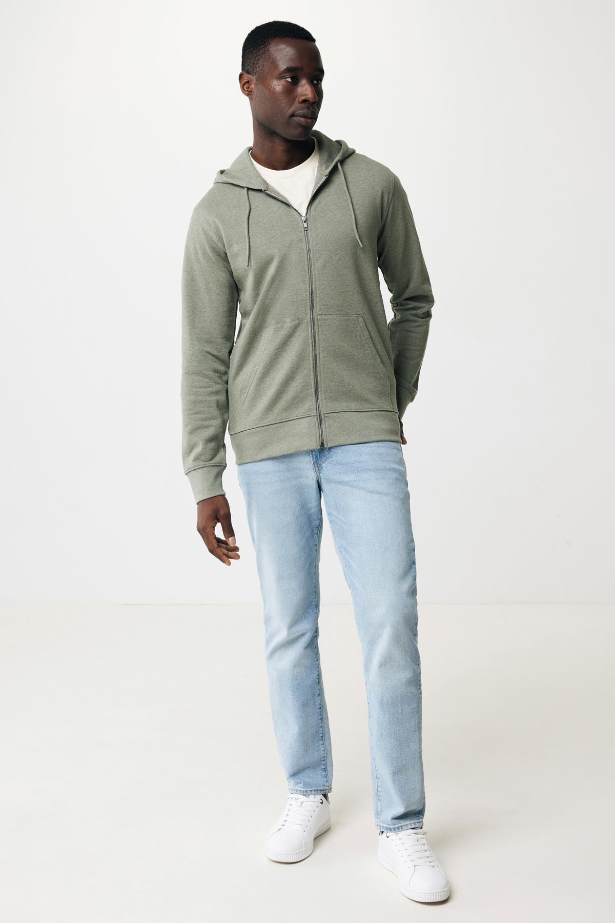 Sweat à capuche avec fermeture à zip de coupe moderne unisexe 100% coton, dont 50% recyclé et 50% biologique, en 340 G/M². Le sweat à fermeture zippée est doté d'une capuche à double épaisseur, de manches longues et côte 1x1. L'intérieur est en molleton brossé pour plus de confort. L'utilisation de véritables matériaux de tissus recyclés & organiques et les déclarations d'impact environnemental sont garanties, en utilisant le traceur physique disruptif AWARE™ et la technologie blockchain. En scannant le code QR, vous aurez accès à un passeport numérique dédié du produit. 2 % des recettes de chaque produit vendu seront reversés à Water.org. Ce produit est certifié OEKO-TEX® STANDARD 100, 2303045 Centexbel. En raison de la nature des fils recyclés, des impuretés et des variations de couleur peuvent apparaître.