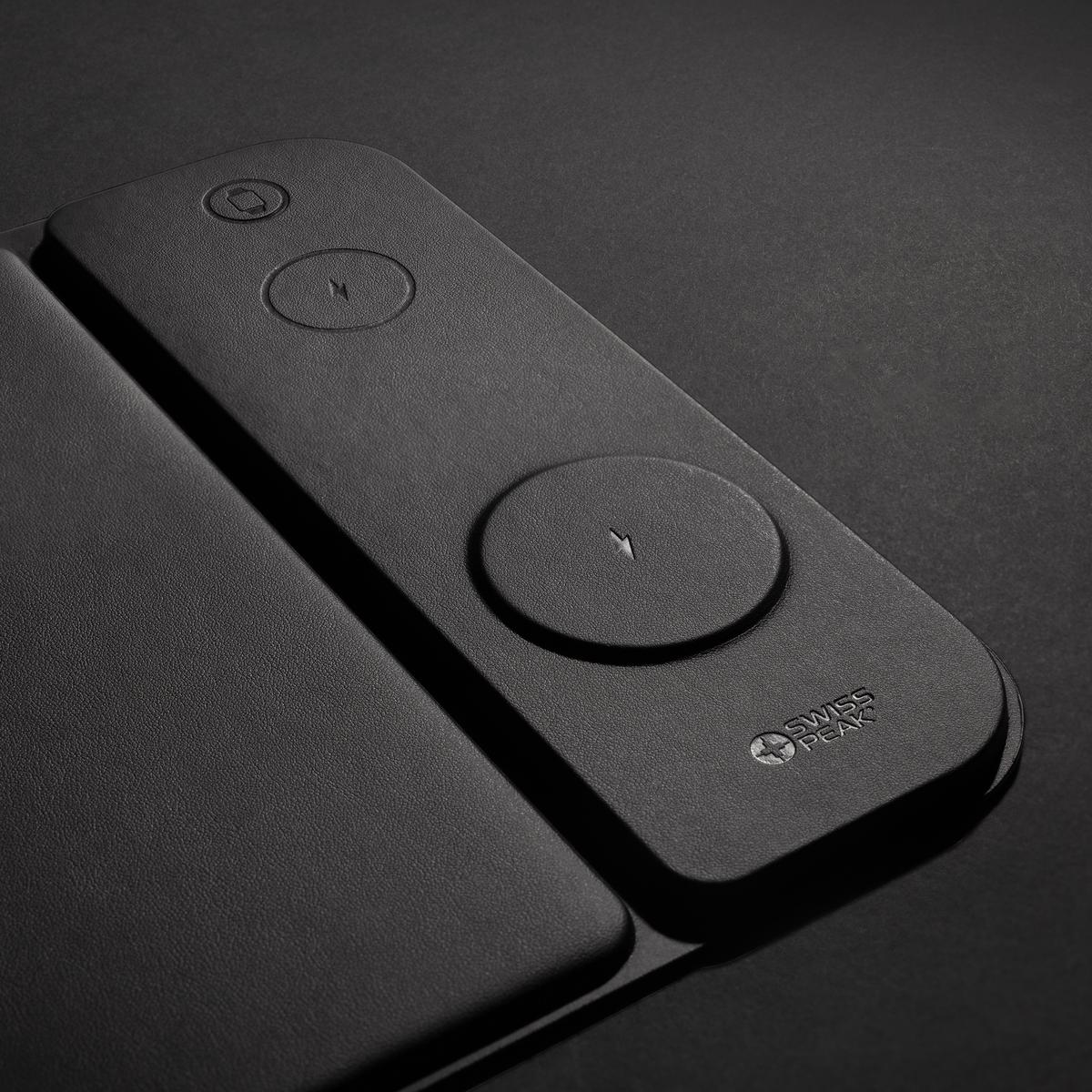 Tapis de souris de luxe 3-en-1 avec chargeur sans fil, fabriqué en PU recyclé RCS. Contenu recyclé total : 5 % par rapport au poids total de l'article. La certification RCS garantit une chaîne d'approvisionnement entièrement certifiée pour les matériaux recyclés. Le chargeur sans fil est équipé d'un chargeur sans fil magnétique de 15 W et d'un chargeur sans fil supplémentaire de 5 W adapté aux boîtiers d'écouteurs ou à d'autres petits appareils rechargeables sans fil, ainsi que d'un chargeur sans fil de 2,5 W pour les smartwatches (montres Apple uniquement). Câble TPE recyclé de 120 cm certifié RCS inclus. Emballé dans un emballage FSC® mix. Article et accessoires 100% sans PVC. Entrée : 9V/3A pour une utilisation optimale. Sortie : Téléphone : 9V/1.1A ; 9V/1.67 A/(15W), Ecouteurs : 5V/1A (5W), Montre : 5V/0.5A.