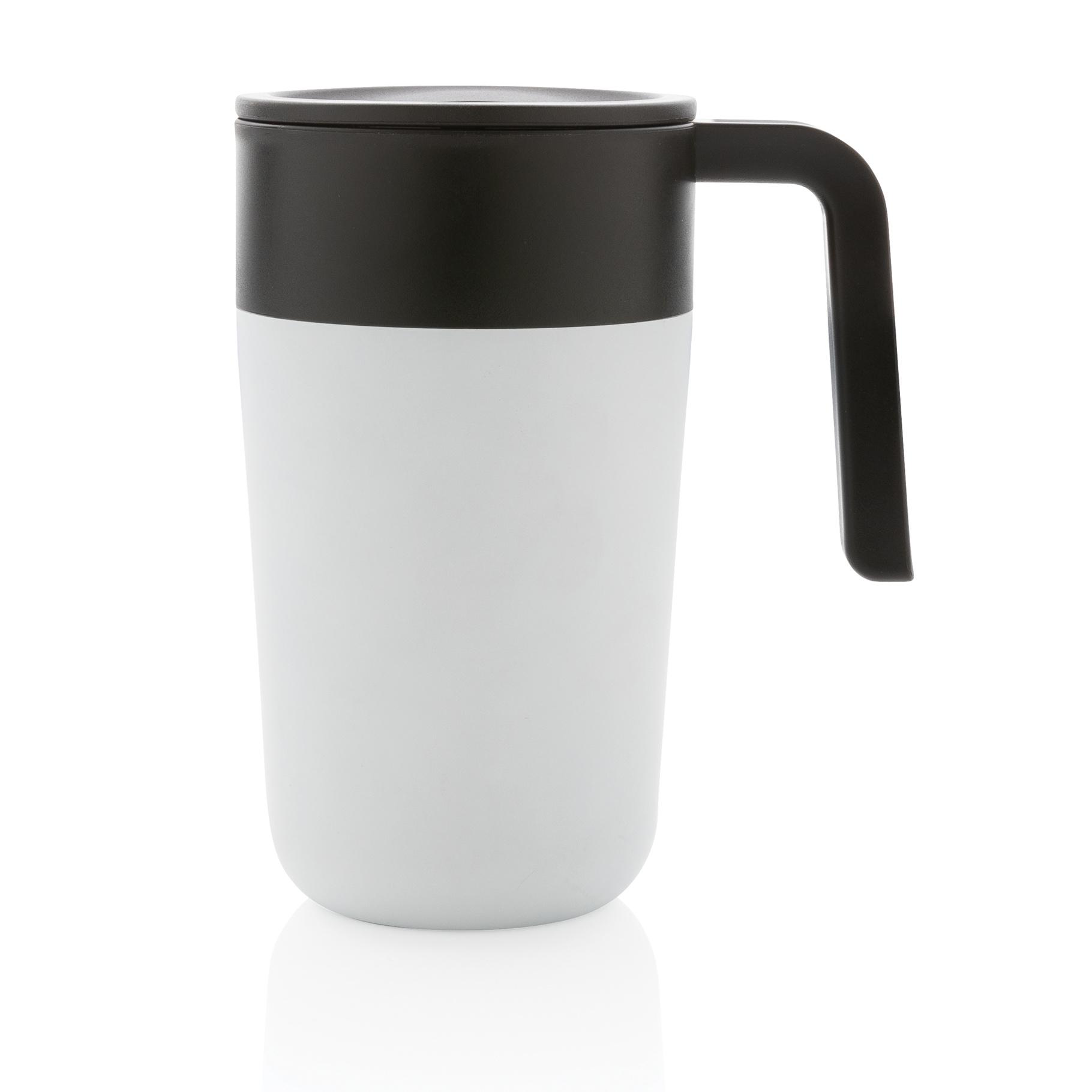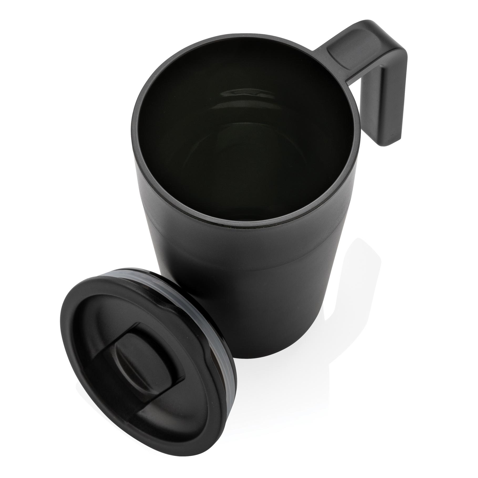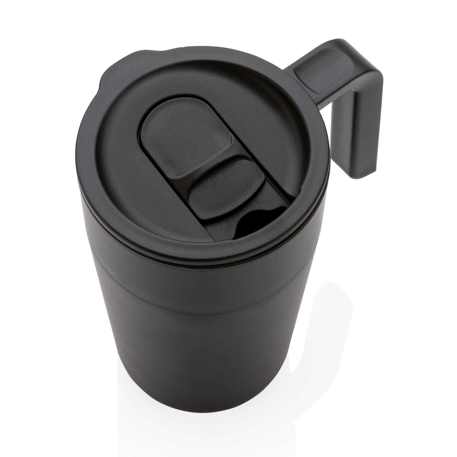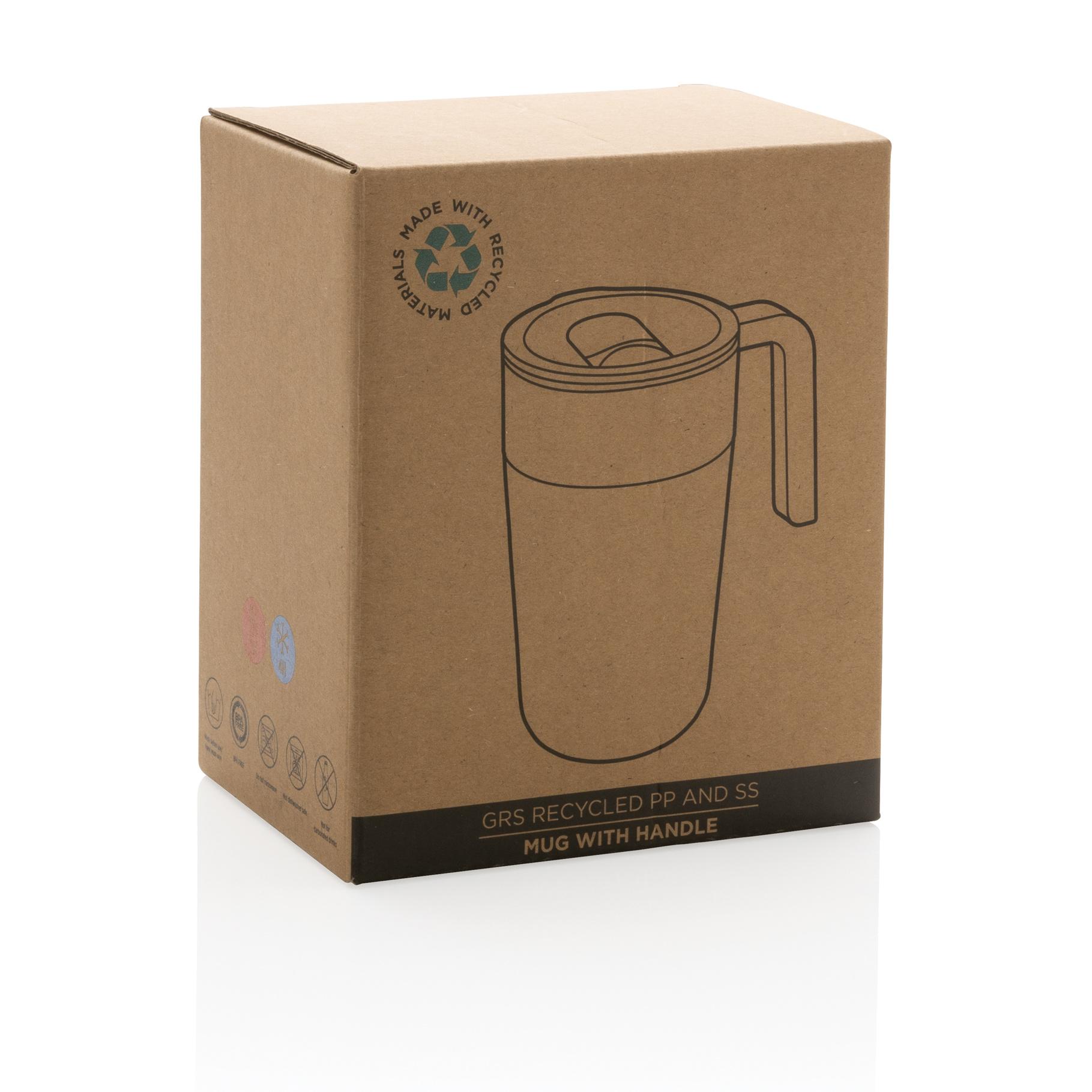 Mug 480ml en PP recyclé GRS et en acier inoxydable avec un couvercle à fermeture coulissante. L'intérieur, le couvercle et la poignée de la bouteille sont fabriqués à partir de 100 % de PP certifié GRS. La certification GRS garantit une chaîne d'approvisionnement entièrement certifiée pour les matériaux recyclés. Contenu recyclé total : 60% sur la base du poids total de l'article. Sans BPA. Emballage kraft certifié FSC® inclus.