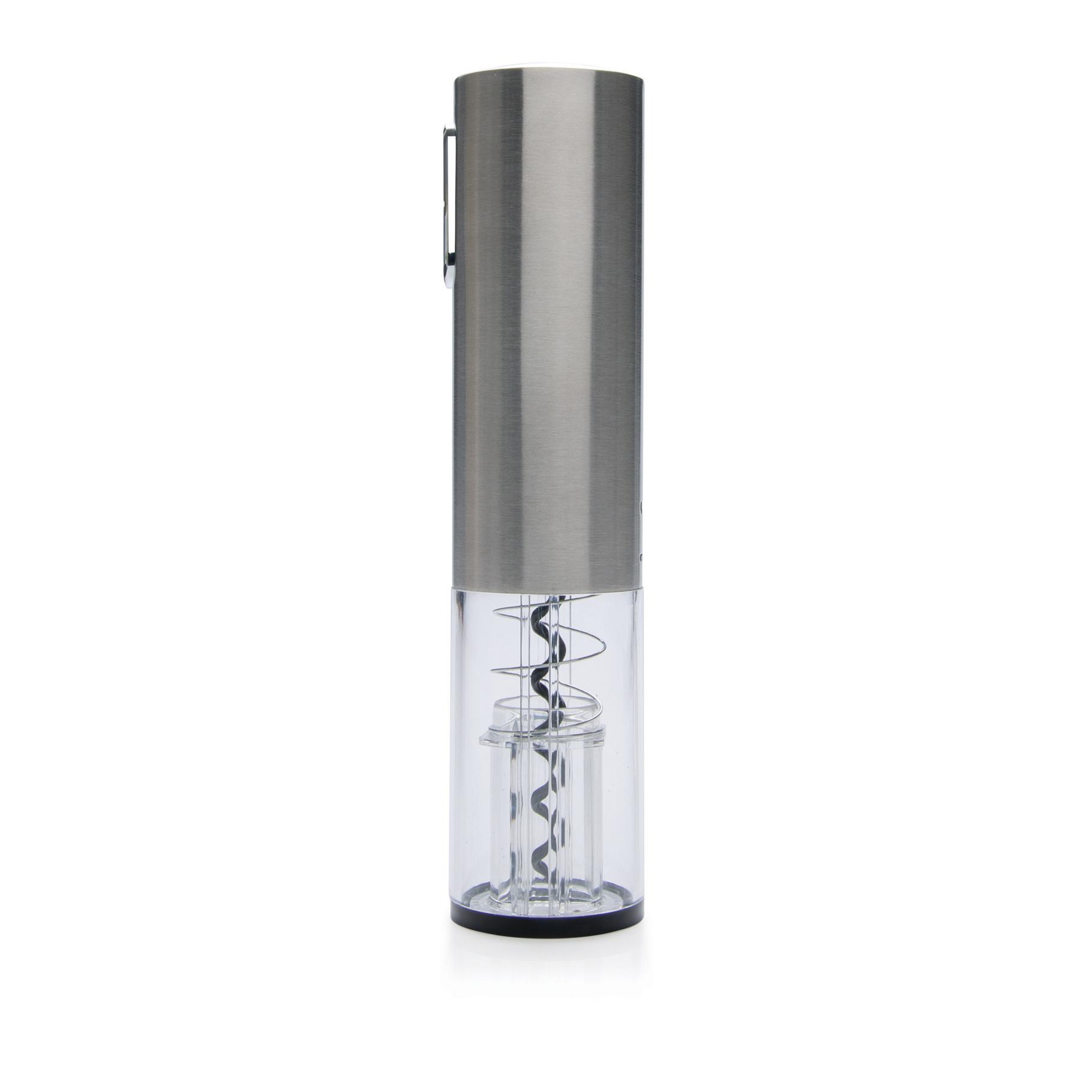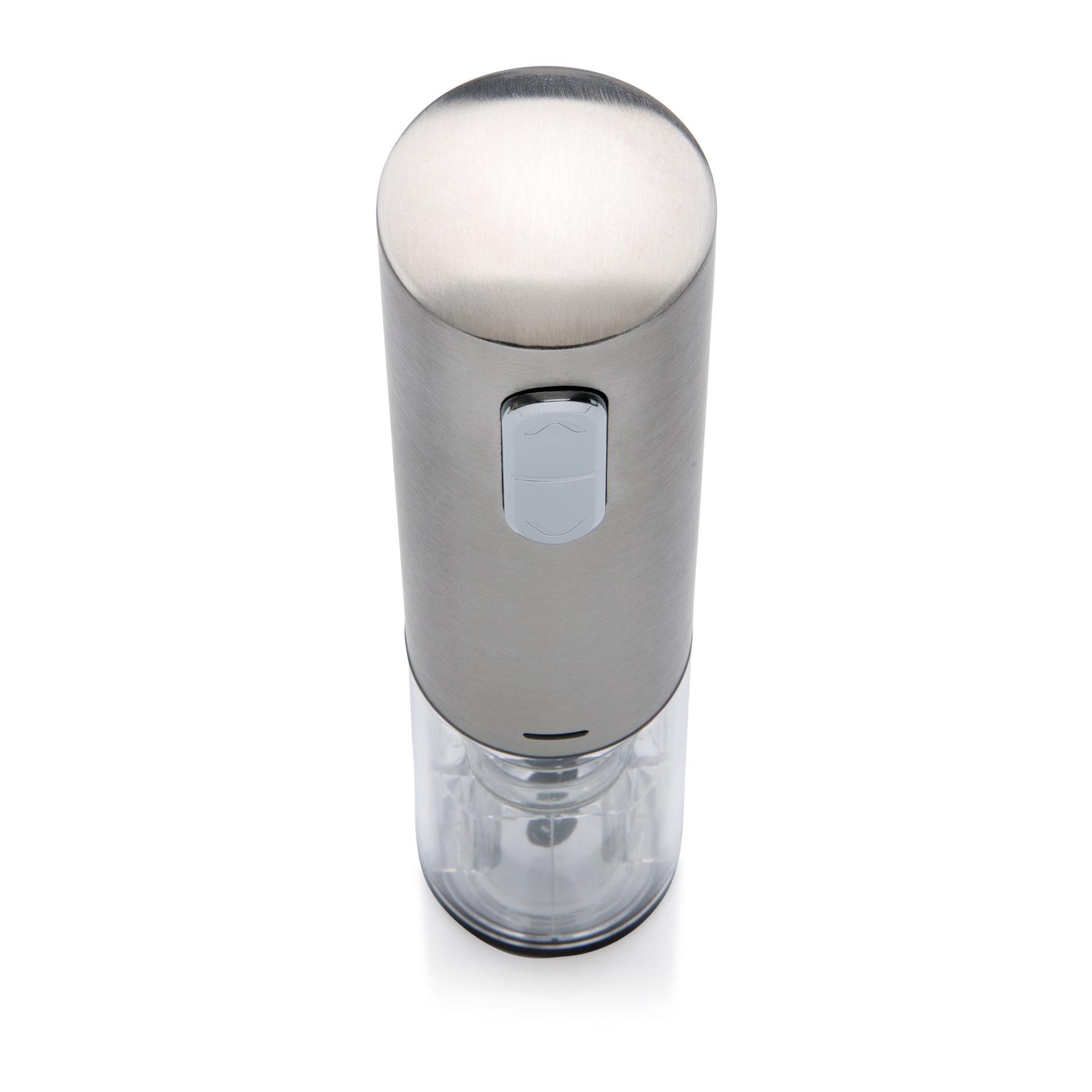 Tire-bouchon électrique moderne avec batterie 3.6V au lithium et lumière bleue intégrée. Ouvrez votre bouteille de vin facilement en 8 secondes. Avec câble micro USB pour charger l’appareil. Emballé dans un coffret.