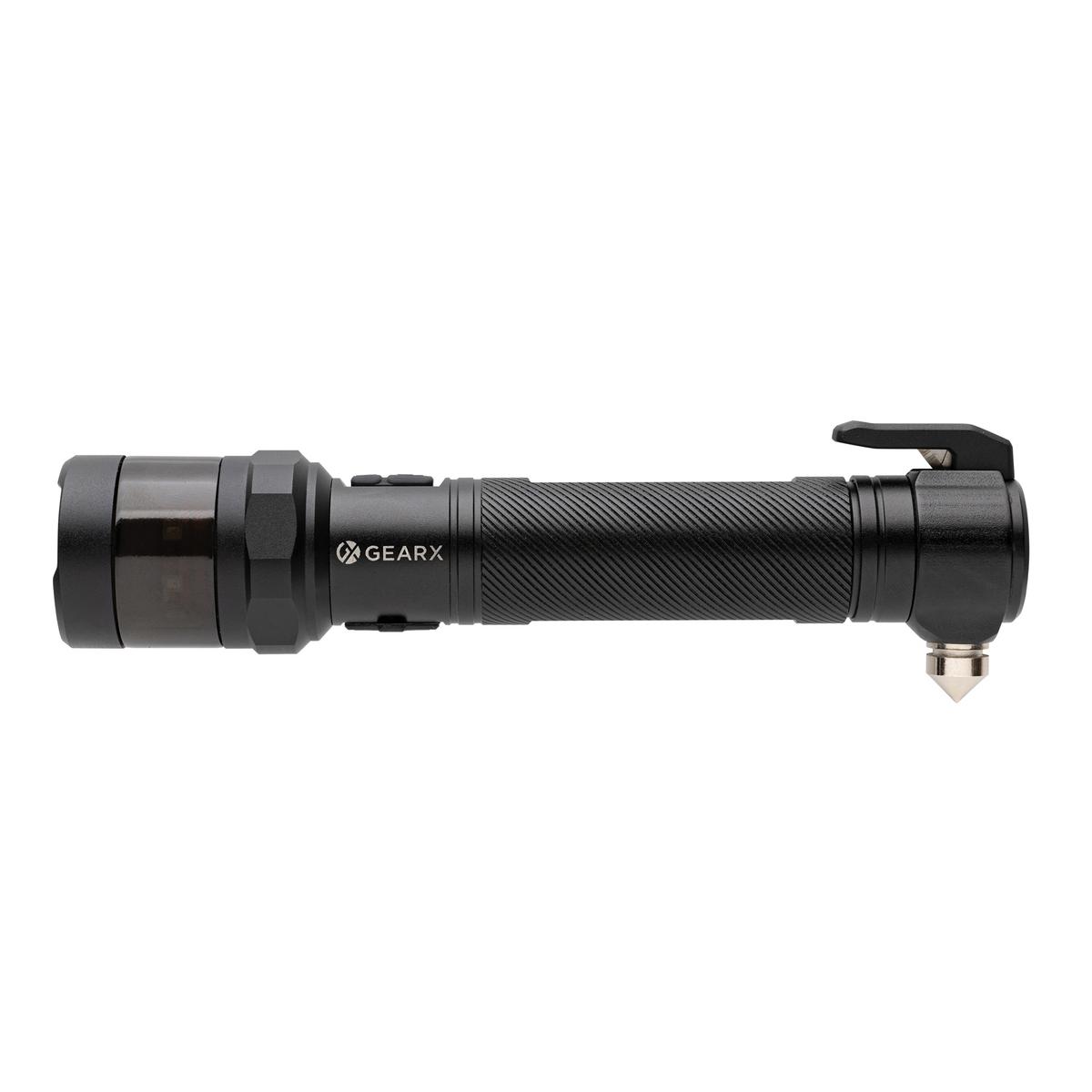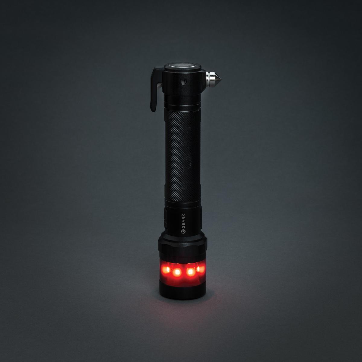Outil de sécurité automobile robuste fabriqué à partir d'aluminium recyclé et d'ABS certifiés RCS. Contenu recyclé total : 59% sur la base du poids total de l'article. La certification RCS garantit une chaîne d'approvisionnement entièrement certifiée pour les matériaux recyclés. La torche utilise une batterie lithium rechargeable de qualité A de 2000 mAh, il n'est donc pas nécessaire de remplacer les piles. Il suffit de la recharger via une prise USB. Puissante torche de 500 lumens avec un faisceau jusqu'à 100 mètres. La lumière LED a 4 modes (100%, 50%, 30% et clignotant) Avec LED rouge d'urgence qui peut fonctionner en 3 modes (flash rapide, flash lent et SOS). Avec coupe-ceinture et marteau à vitre intégrés. Aimant permettant de le fixer sur une surface magnétique. Durée de fonctionnement avec une seule charge : 2 heures. Étanchéité IPX 4.