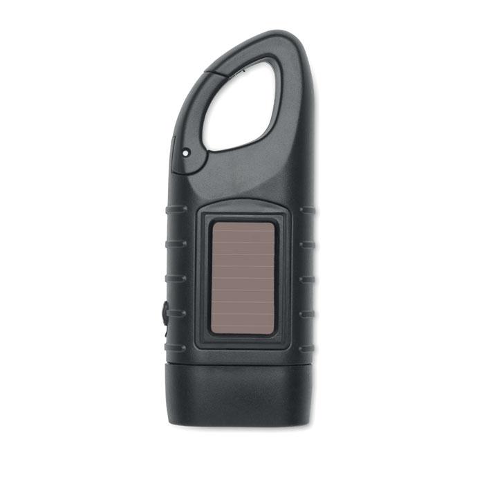 Lampe torche 3 LED blanches alimentée à la fois par panneau solaire et manivelle dynamo en ABS recyclé.