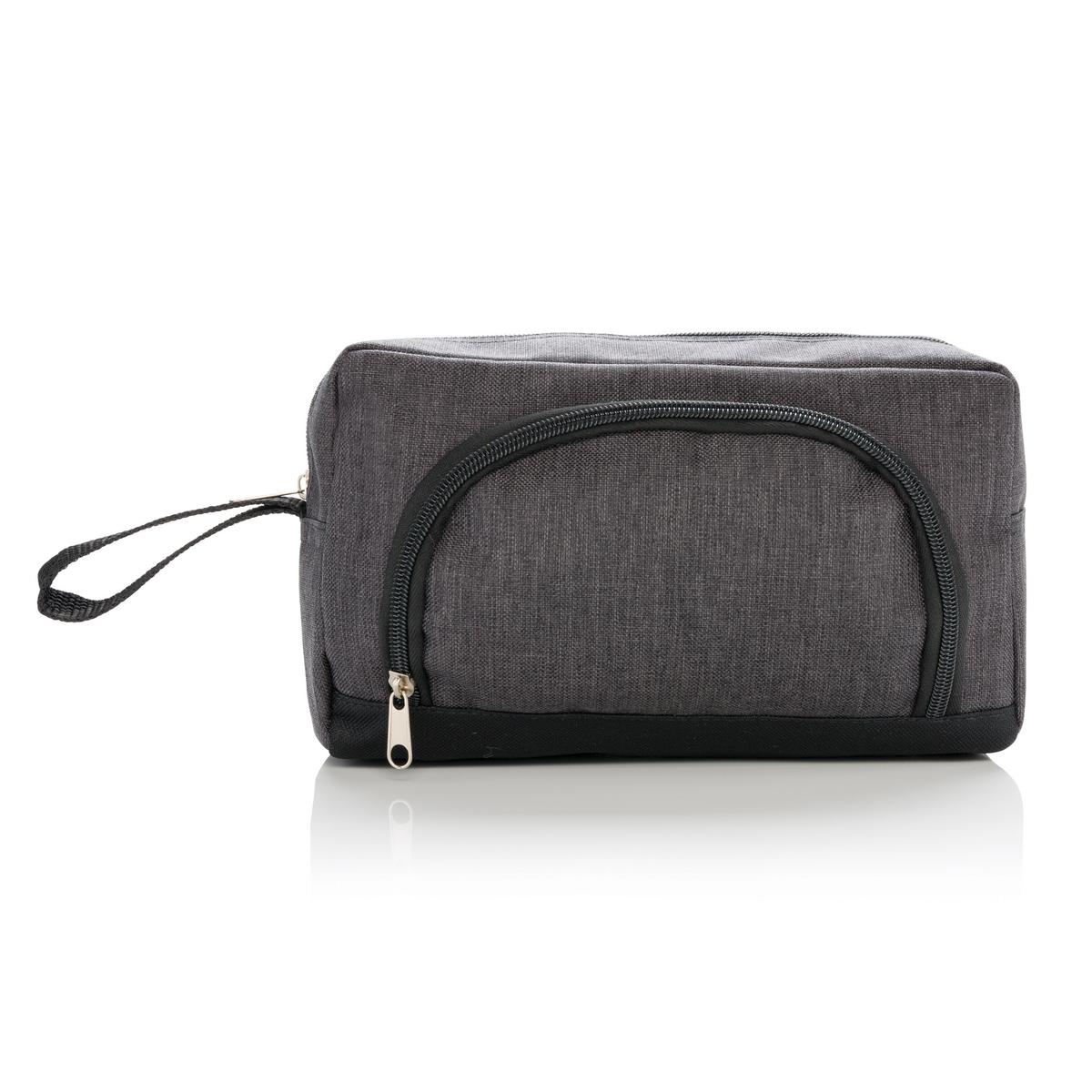 Trousse de toilette 600D double ton avec plusieurs compartiments pour un rangement optimal. Sans PVC.