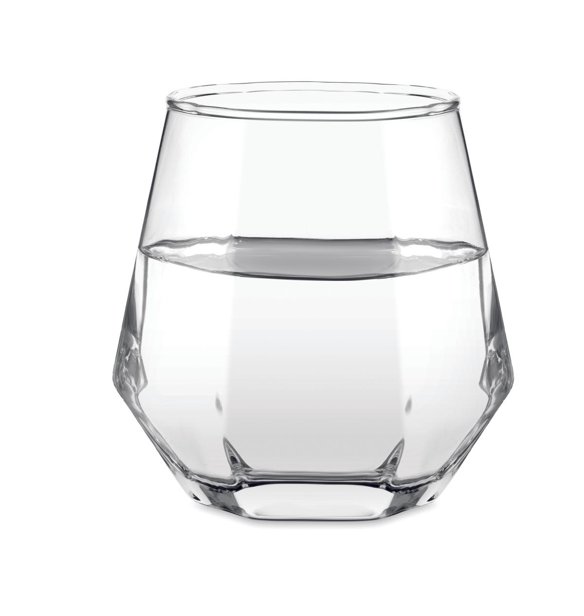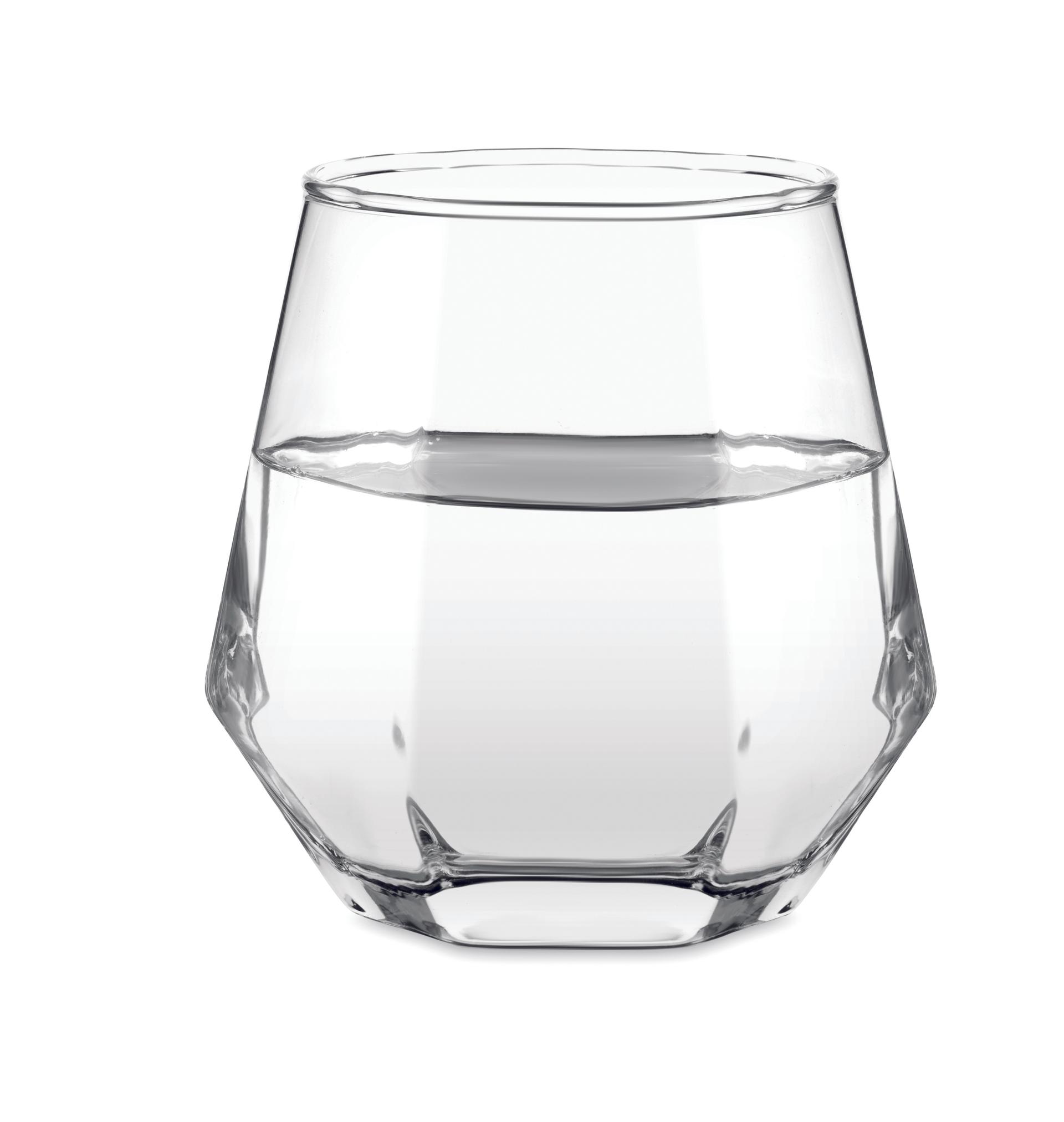Verre à eau en forme de diamant incliné. Pour le whisky ou d'autres liqueurs. Capacité : 300 ml.