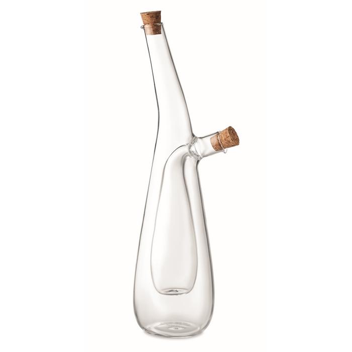 Bouteille d'huile et de vinaigre en verre borosilicate avec bouchon en liège. Capacité extérieure : 300 ml. Capacité intérieure : 80 ml. huile et vinaigre non fournis. Le liège est un matériau 100% naturel. En raison de sa structure et de la porosité de sa surface, le résultat final de l'impression par article peut présenter des différences.
