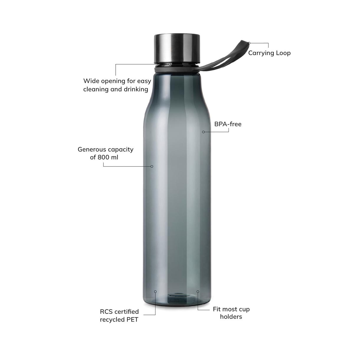 Bouteille d'eau fabriquée à partir de PET recyclé certifié RCS sans BPA. D'une capacité généreuse de 800 ml, cette bouteille est idéale pour les séances d'entraînement, les voyages ou chaque fois que vous avez besoin d'une hydratation supplémentaire. La boucle sert de poignée pratique, parfaite pour être transportée en déplacement ou accrochée à un équipement d'exercice. Sa forme idéale lui permet de s'adapter à la plupart des porte-gobelets. Convient exclusivement aux boissons froides. Lavage à la main uniquement. Certifié par RCS (Recycled Claim Standard), cette certification garantit que l'ensemble de la chaîne d'approvisionnement en matériaux recyclés est vérifiée. Le produit contient 68 % de PET recyclé certifié RCS.