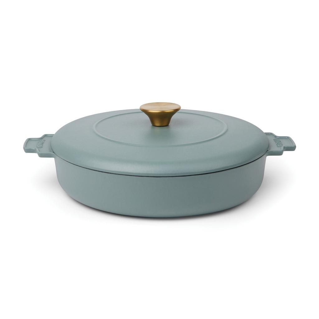 Découvrez la braisière en fonte de la série Monte Heritage, un ajout intemporel à votre cuisine. Fabriqué en fonte solide et recouvert d'émail aux couleurs sobres. Avec son esprit bistro français et son bouton de couleur laiton, il ajoute une touche de sophistication à tout espace culinaire. Conçu pour une manipulation sécurisée, le pot est doté de poignées robustes, garantissant une manœuvre sûre et confortable. L'intérieur légèrement plus texturé développe progressivement une patine antiadhésive, simplifiant le nettoyage et améliorant les performances de cuisson. De la friture aux petites cocottes ou plats à sauce, cette poêle est également un excellent plat de cuisson. Compatible tous feux, dont induction, la marmite Monte Heritage offre une polyvalence pour différents modes de cuisson. Une cocotte en fonte, si elle est bien entretenue, durera de nombreuses années et pourra être transmise de génération en génération.