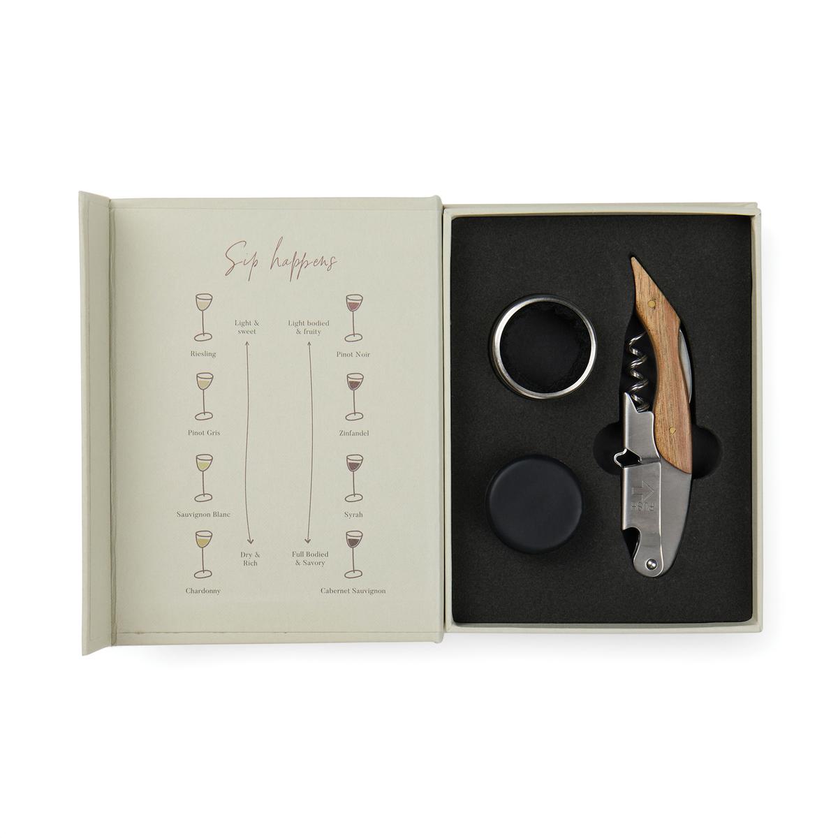 Embarquez pour un voyage sophistiqué avec le coffret Histoire du vin, élégamment emballé dans une boîte cadeau qui ressemble à un livre classique. Ce coffret comprend un tire-bouchon de sommelier, un bouchon de bouteille en silicone pour conserver la fraîcheur du vin plus longtemps, et un bouchon à goutte pour servir le vin sans goutter. L'emballage unique protège non seulement vos outils, mais raconte également une histoire captivante sur le vin, ce qui en fait un cadeau idéal pour les amateurs de vin. La boîte cadeau est fabriquée à partir de papier certifié FSC®.