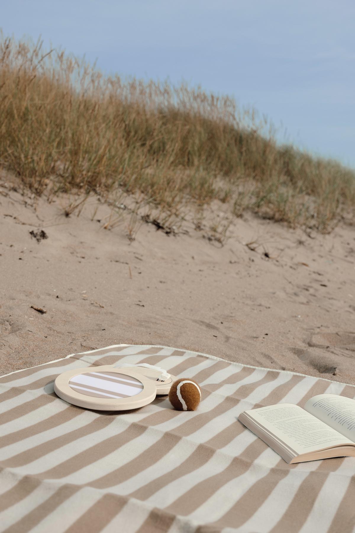 C'est le jeu de plein air idéal à apporter à la plage ou au parc. Il comprend 2x raquettes scratch et une balle fabriquées à partir de bois contreplaqué certifié FSC®. Le design est à la fois sportif et raffiné, avec un motif rayé bicolore sur les raquettes et une balle marron assortie. Le jeu est emballé dans un sac en toile avec un dos en filet, ce qui permet de l'emporter facilement. Une notice d'utilisation est incluse.