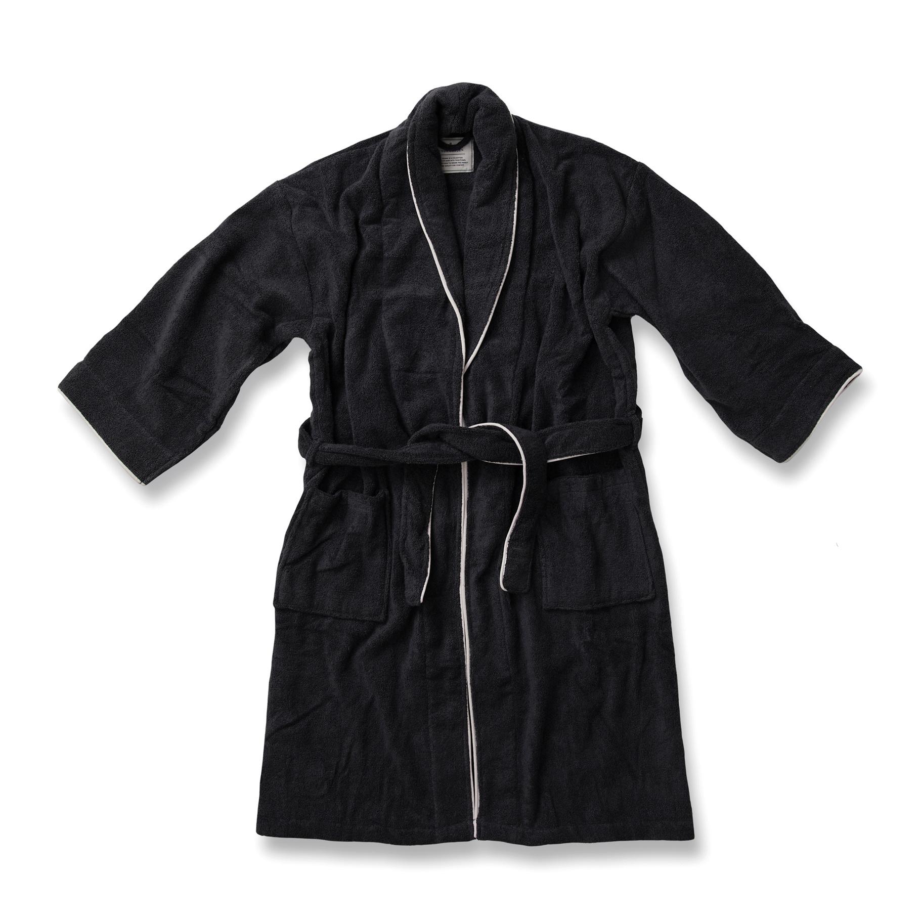 Peignoir luxueux 100% coton. Le peignoir est un modèle classique avec un col extra large et une ceinture à la taille. Il présente également plusieurs détails sympathiques, tels que des coutures fermées et un passepoil contrastant sur le col. Fabriqué à partir d'une longue fibre de coton avec des fils non tordus. Le résultat est un peignoir incroyablement doux que vous ne voudrez jamais enlever. OEKO-TEX® STANDARD 100. 09.HIN.68091. Hohenstein HTTI.