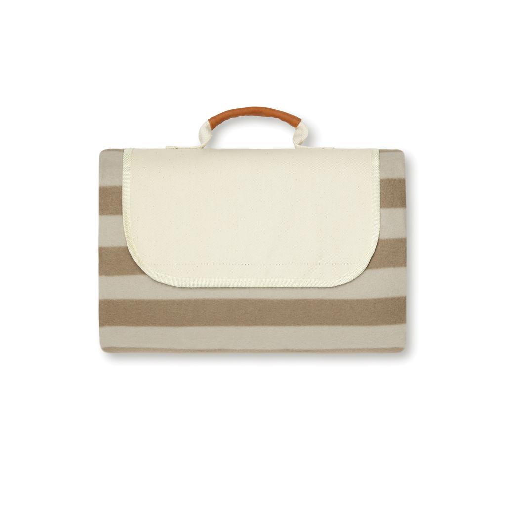 Couverture de pique-nique en polaire douce avec toile de coton et détails en PU. Sa construction astucieuse permet de la plier et de l'emporter facilement. Le molleton est fabriqué en PET recyclé certifié GRS. Le dos est en PEVA, qui repousse l'eau. Certifiée par GRS (Global Recycled Standard), la certification GRS garantit que l'ensemble de la chaîne d'approvisionnement des matériaux recyclés est certifiée. Le contenu recyclé total est basé sur le poids total du produit. Ce produit contient 51 % de molleton recyclé GRS.