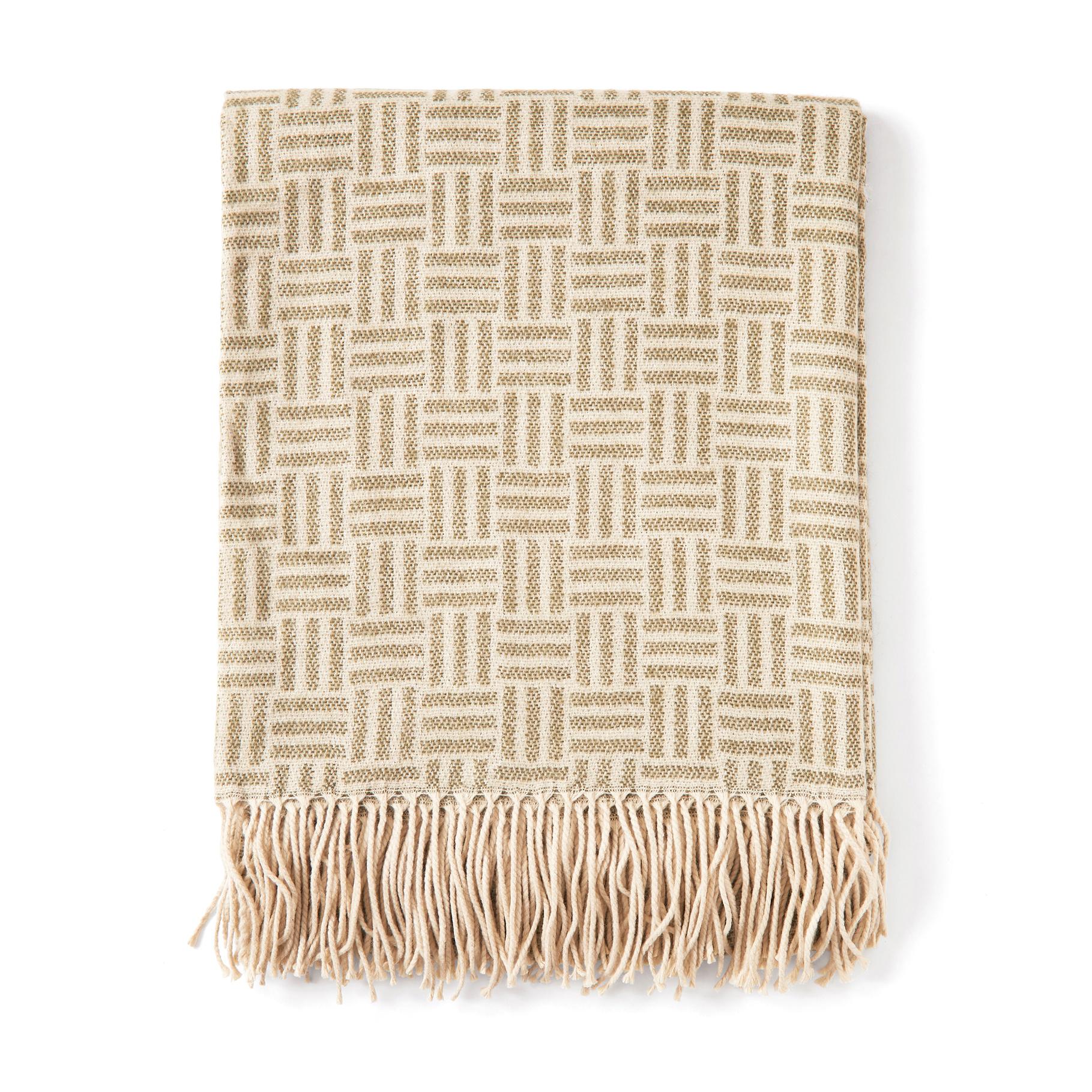 Plaid tissé en jacquard avec un motif géométrique subtil qui donne à la couverture un design élégant idéal pour la maison. Un joli motif écossais pour tous ceux qui ne s'intéressent pas seulement au confort, mais qui veulent aussi quelque chose qui donne à leur maison un aspect plus élégant. Fabriqué à 100% en acrylique, un matériau synthétique fabriqué par l'homme dont les propriétés sont conçues pour imiter la fibre de laine.