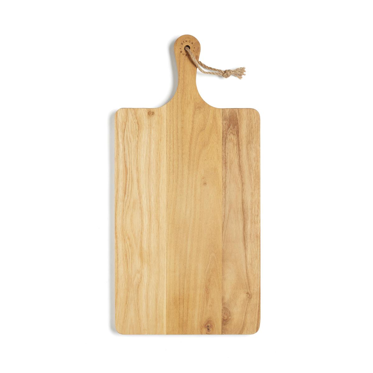 Planche de service élégante qui trouvera sa place dans n'importe quelle cuisine. Sa grande surface permet de l'utiliser facilement tant pour couper que pour servir. La planche est fabriquée en teck certifié FSC® et présente une belle surface de bois dorée à brun moyen qui s'assombrit avec le temps. La teneur élevée en huile confère à la planche une protection efficace et la maintient en bon état pendant longtemps.