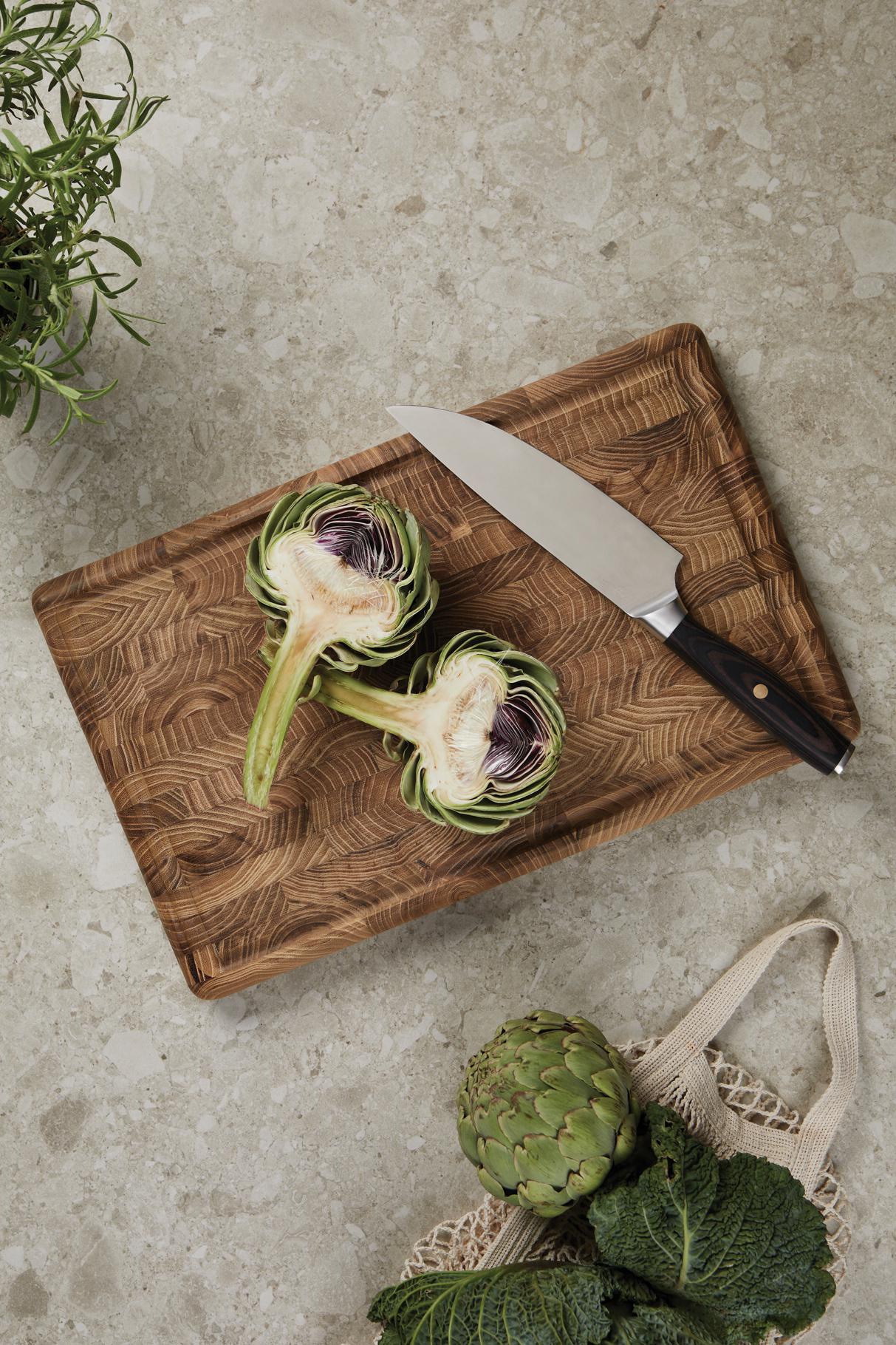 Couteau de chef fabriqué en acier inoxydable recyclé RCS qui offre à la fois style et polyvalence. Le couteau de chef est incroyablement polyvalent et peut être utilisé pour un large éventail de tâches, comme par exemple hacher, trancher, couper en dés et émincer. Sa grande lame permet une coupe efficace. Taille : 33 cm (lame 21 cm). Fabriqués en acier inoxydable 5Cr15Mov de haute qualité, ces couteaux offrent une durabilité et des performances exceptionnelles. Le beau manche en bois de pakka offre une prise en main confortable et sûre, tandis que le superbe équilibre de la lame garantit une grande facilité d'utilisation. Lavage à la main uniquement pour garantir une longue durée de vie. Certifié par RCS (Recycled Claim Standard), la certification RSC garantit que l'ensemble de la chaîne d'approvisionnement en matériaux recyclés est certifiée. Le contenu recyclé total est basé sur le poids total du produit. Ce produit contient 27 % d'acier inoxydable recyclé certifié RCS.