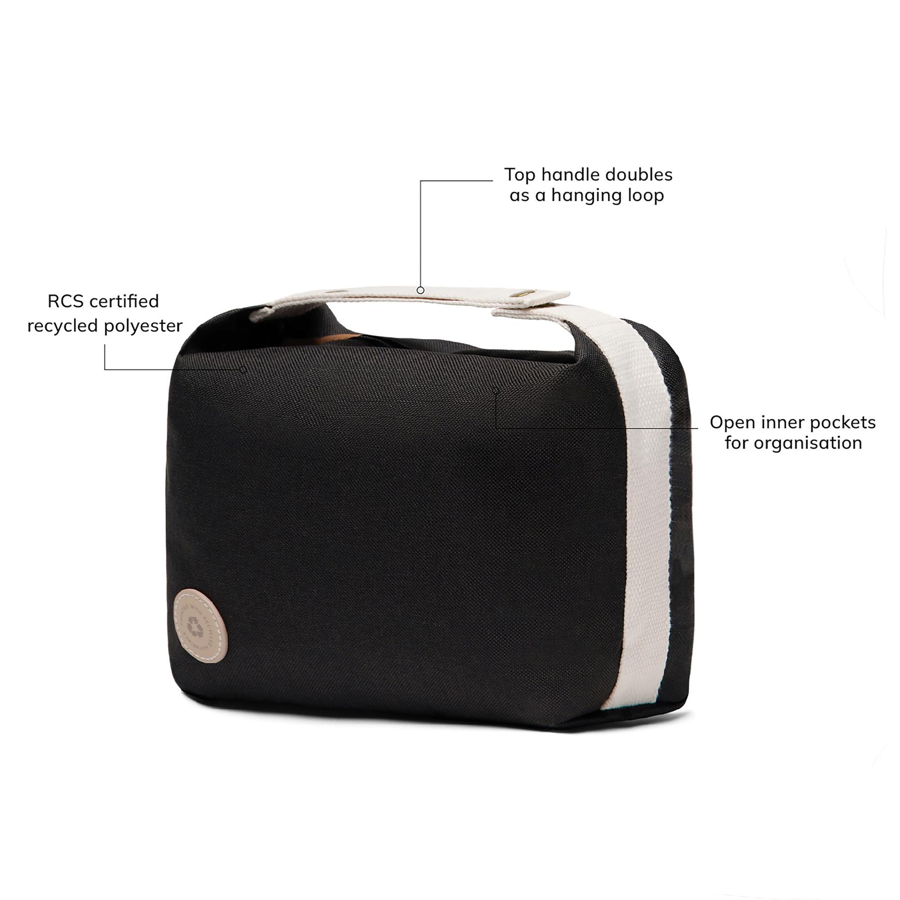 Cette trousse de toilette, à la fois simple et élégante fabriquée en polyester recyclé certifié RCS avec des détails contrastés, allie praticité et design raffiné. La poignée supérieure, sécurisée par un bouton pression, sert également de boucle de suspension. Une fermeture à glissière lisse sur le dessus permet d'accéder facilement au compartiment principal, tandis que la poche intérieure ouverte permet de ranger les objets essentiels. La certification RCS (Recycled Claim Standard) garantit que l'ensemble de la chaîne d'approvisionnement en matériaux recyclés est certifiée. Le contenu recyclé total est basé sur le poids total du produit.Ce produit contient 24 % de polyester recyclé certifié RCS.